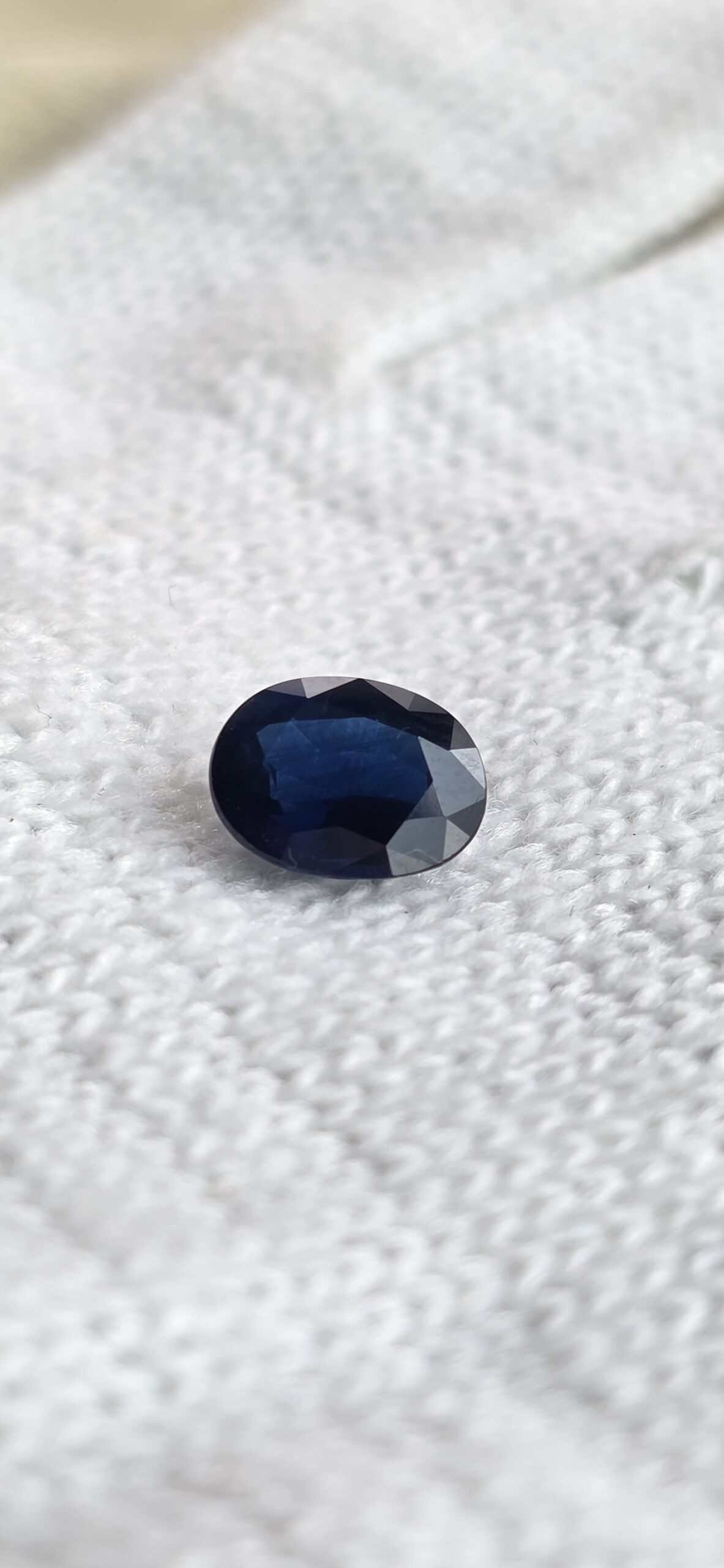 A beautiful 2.90 carat natural blue sapphire in an elegant oval cut, sourced from Kanchanaburi, Thailand. This gemstone showcases a rich blue color with fine luster, ideal for crafting rings, pendants, or other luxury jewelry pieces.