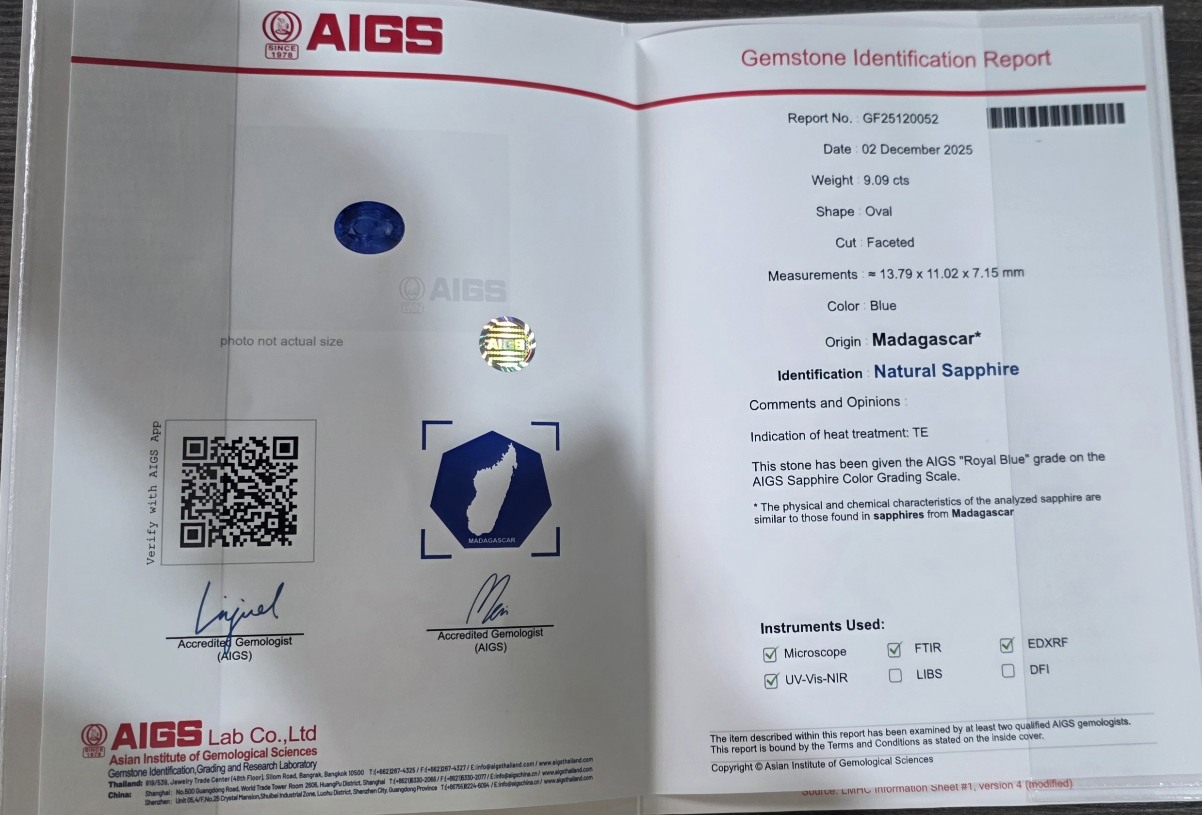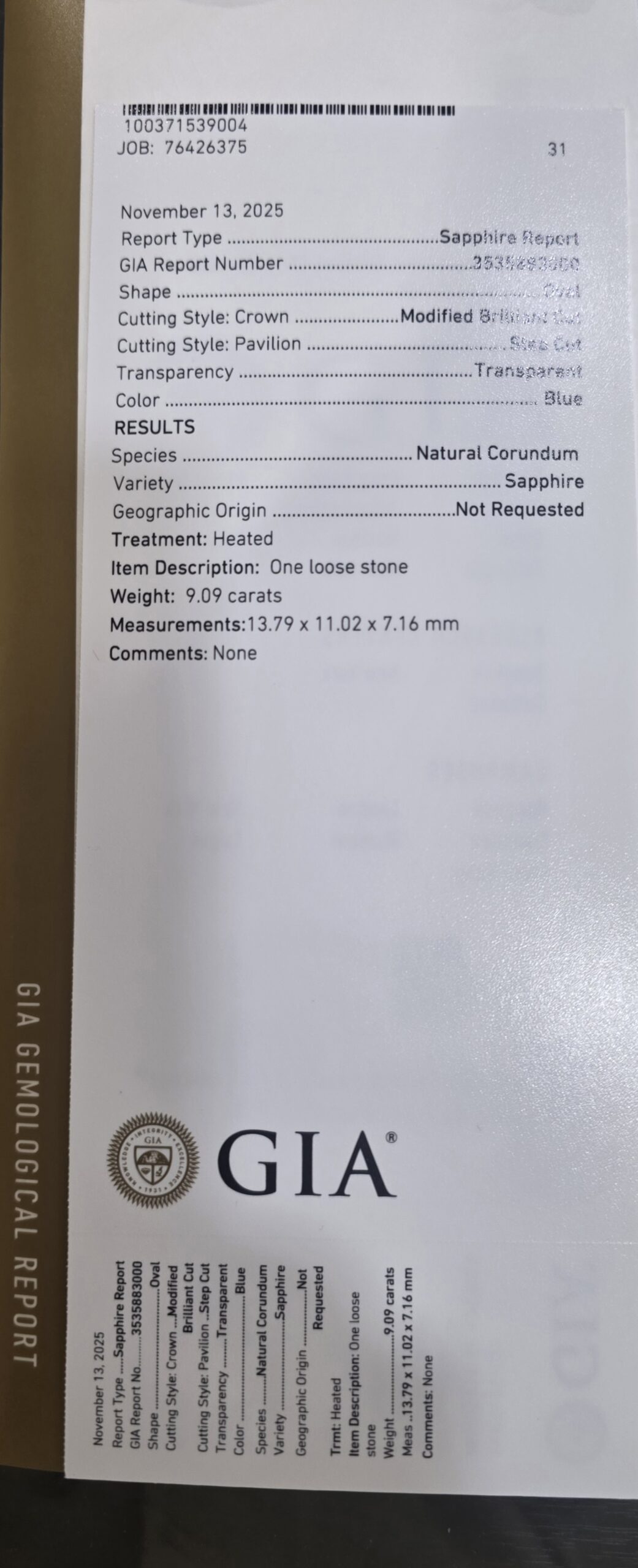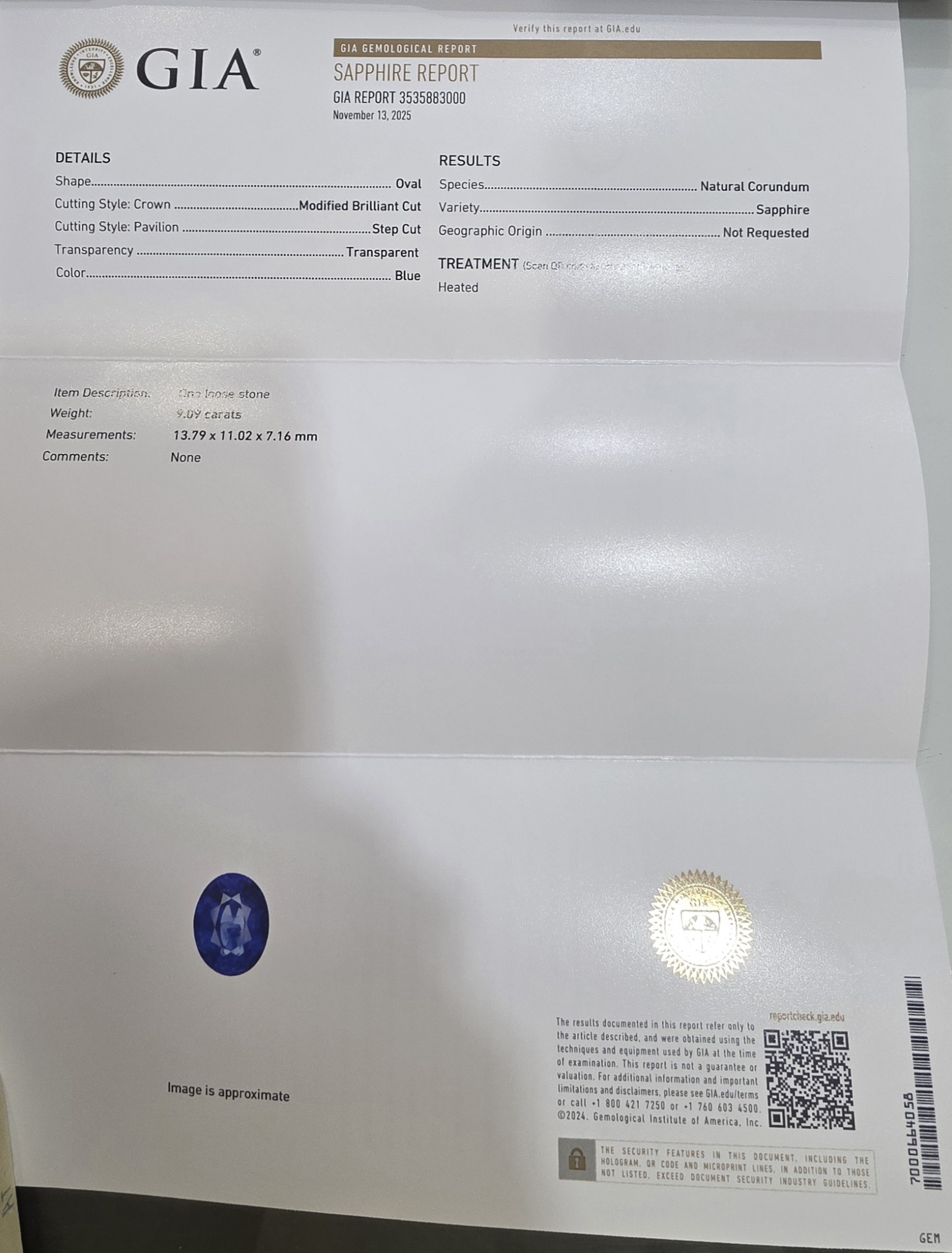 This exquisite Natural Blue Sapphire (Neelam) weighs 9.09 carats and features an elegant oval cut with dimensions 13.79 × 11.02 × 7.16 mm. Its deep royal-blue color and excellent transparency make it a powerful gemstone for both luxury jewelry and astrological benefits.