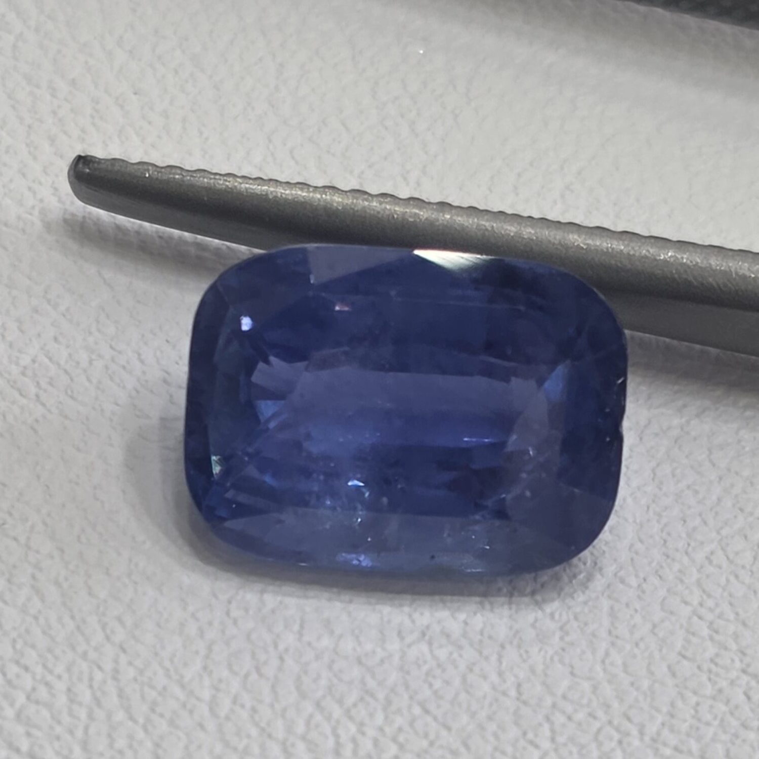 This natural unheated Blue Sapphire (Neelam) from Mozambique features a classic cushion cut, enhancing its deep blue color and natural brilliance. With an impressive weight of 7.72 carats, this gemstone is completely untreated, preserving its original beauty and rarity.
