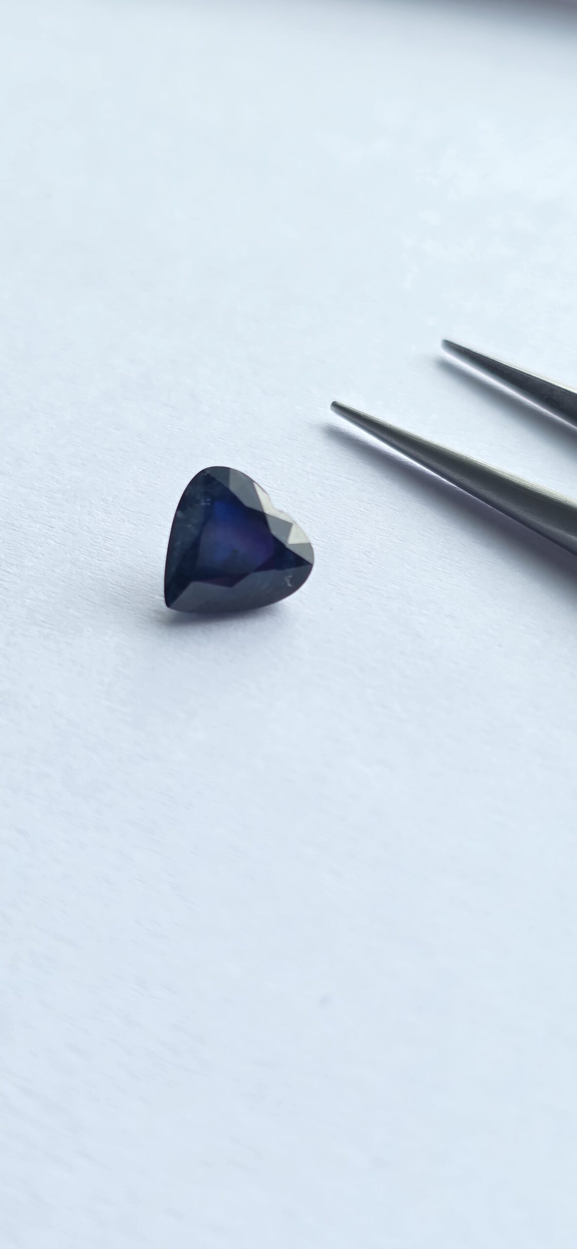This exquisite heart-shaped sapphire showcases rich color enhanced through diffusion treatment, bringing out brilliance and charm. Its 9.7 mm size and 3.85 carat weight make it perfect for statement rings, pendants, or custom jewelry creations.Add elegance to your collection with this Natural Diffusion Sapphire, beautifully cut into a heart shape. With its vibrant charm and expert finish, this gemstone is perfect for fine jewelry creations or as a collector’s piece.