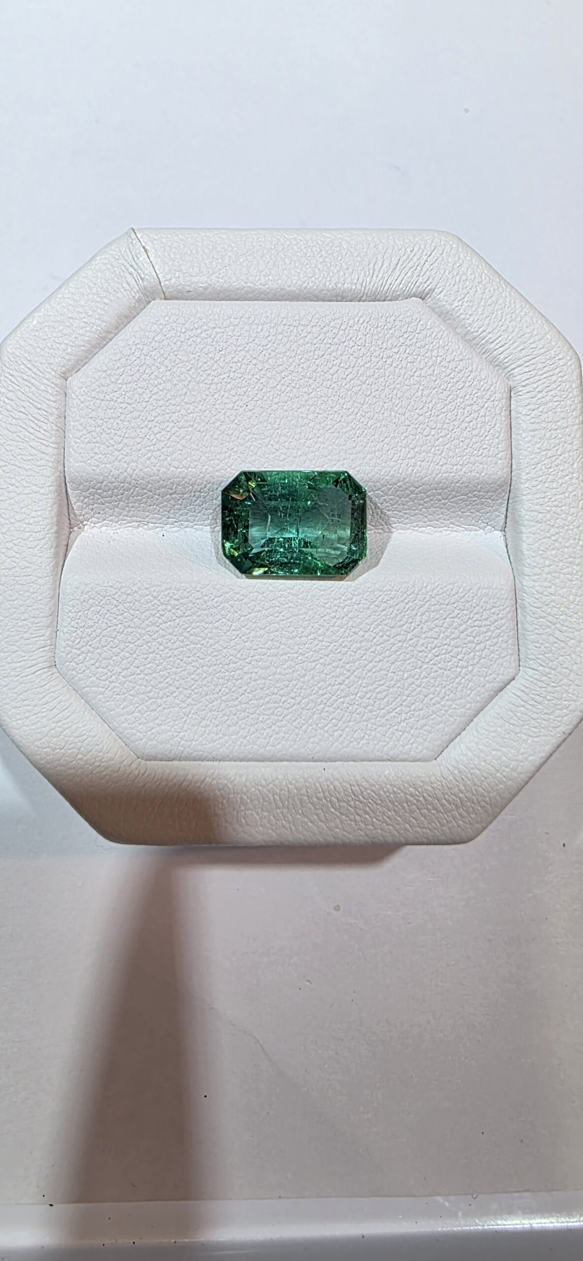 This exquisite Natural Emerald (Panna) weighs 5.23 carats and is crafted into a classic Rectangular Octagon Cut. Measuring 12.7 × 9.1 × 6.2 mm, it displays a rich green hue, symbolizing growth, harmony, and wisdom. Emeralds are among the most cherished gemstones for both luxury jewelry and astrological purposes, admired for their elegance and spiritual energy.