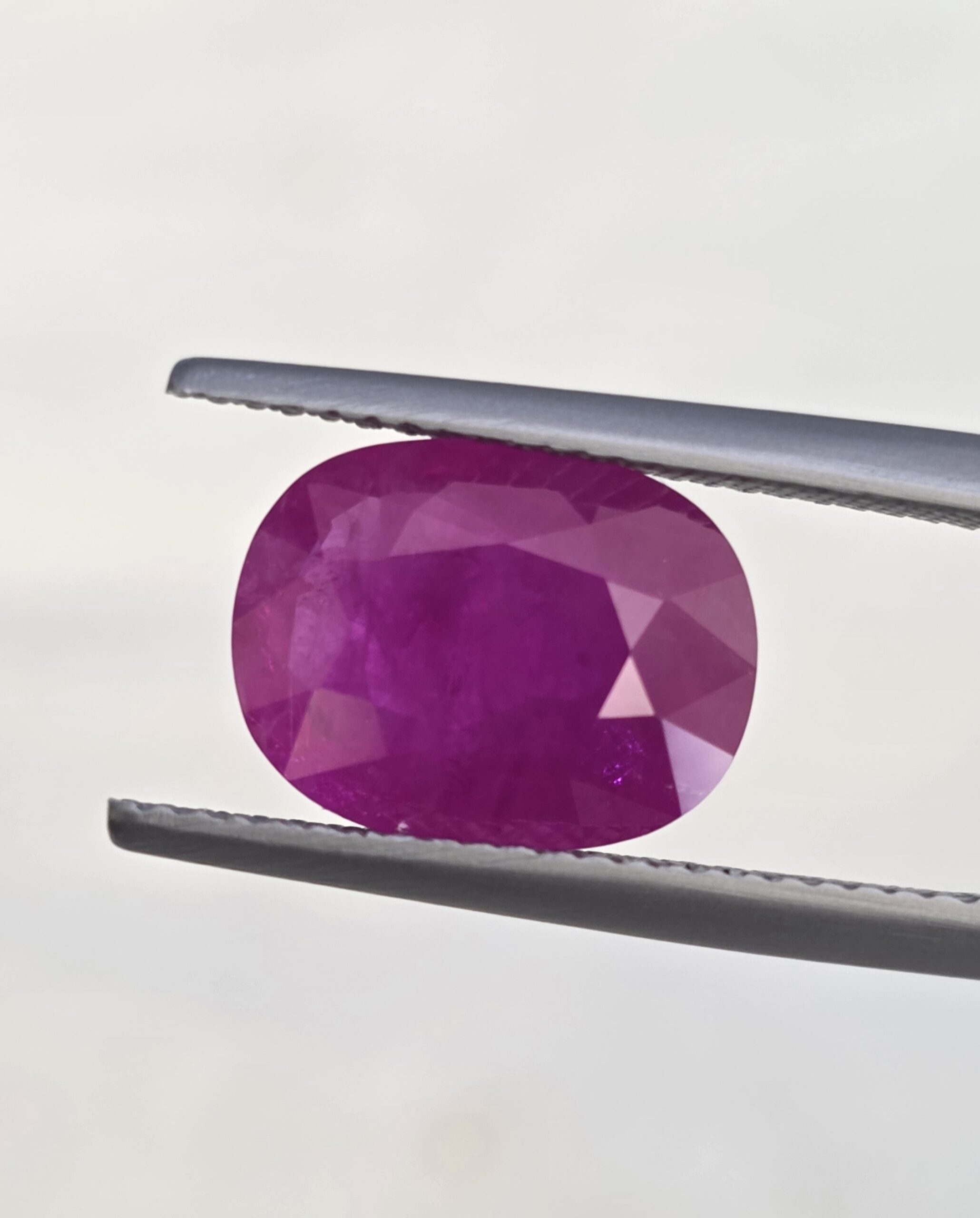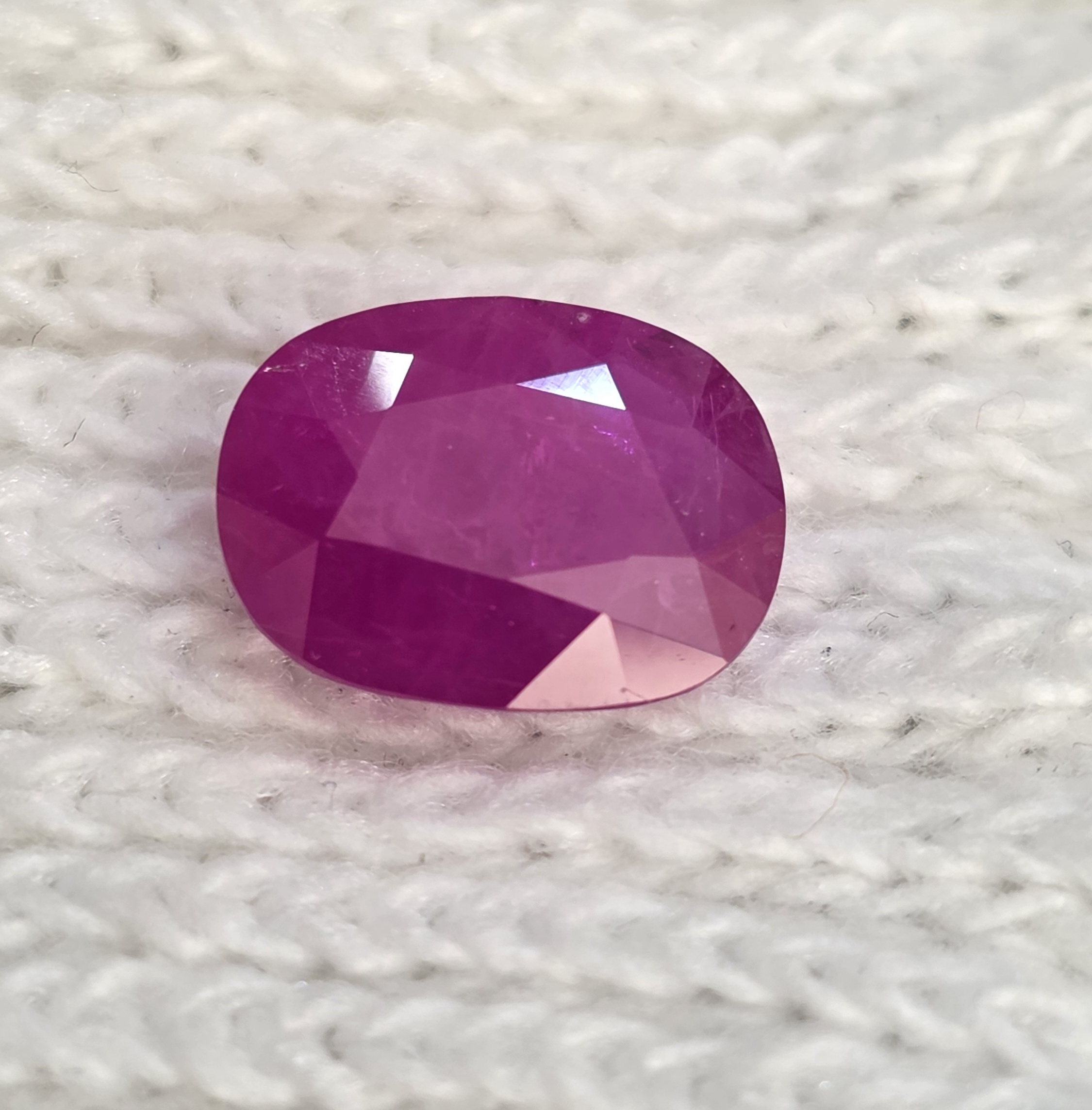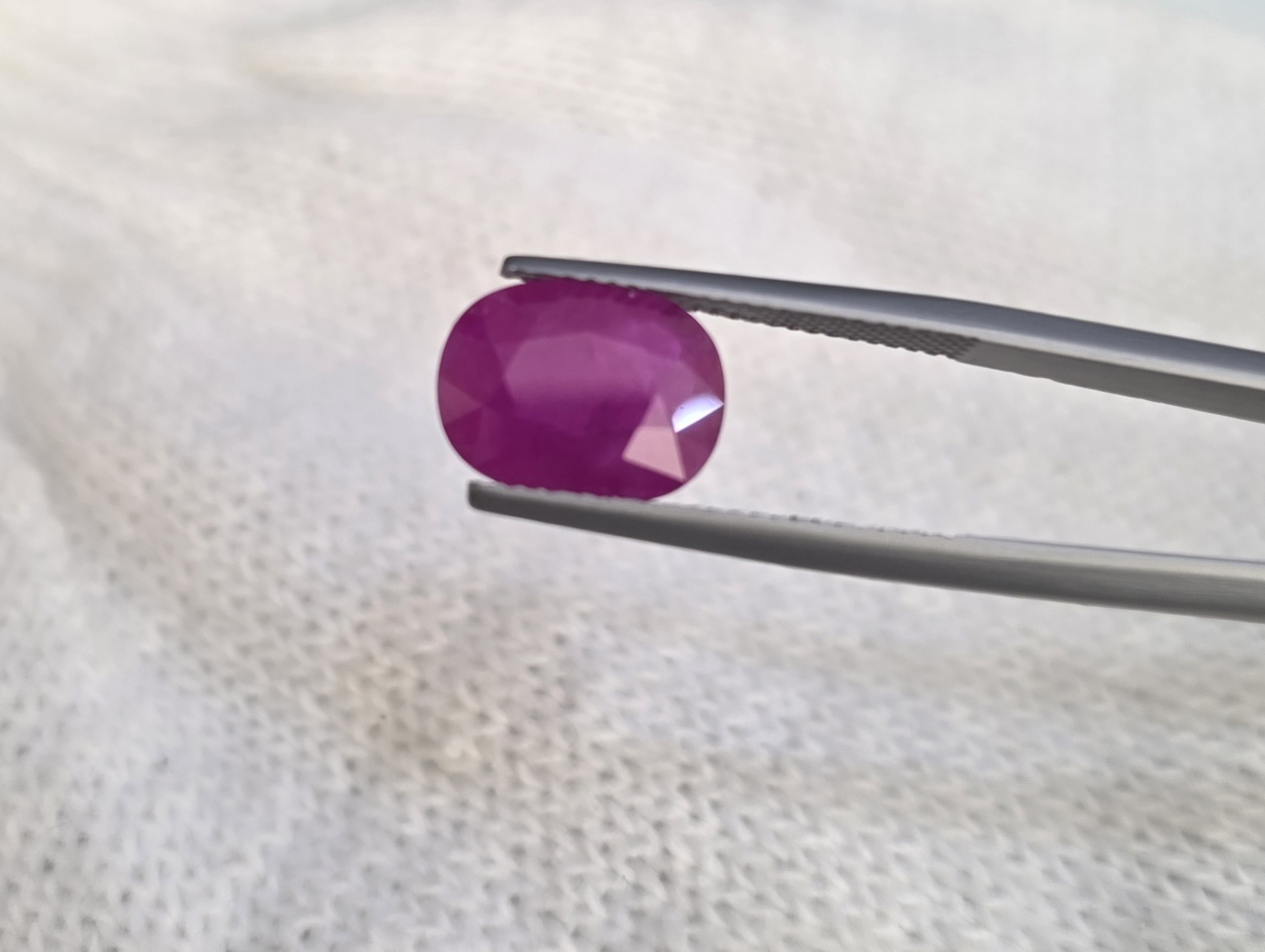 Premium quality Natural Ruby Sapphire weighing 4.56 carats, beautifully cut in an elegant oval shape. Sourced from Mozambique, this gemstone features excellent brilliance and vibrant color, enhanced through standard heat treatment. Ideal for fine jewelry and astrological benefits.