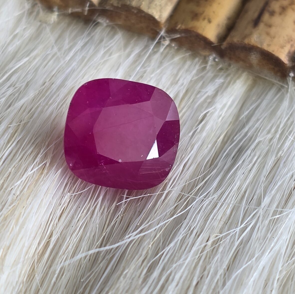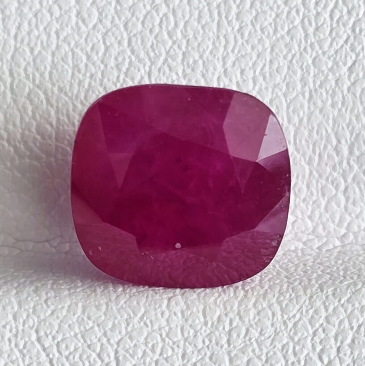 This elegant 5.59 Carat Natural CUSHION Ruby is finely crafted in a CUSHIONcut (dimensions 9.75 × 9.20 × 6.57 mm), displaying a rich, vibrant red hue with exceptional brilliance. Perfect for fine jewelry or astrological purposes, this ruby reflects both luxury and powerful energy.