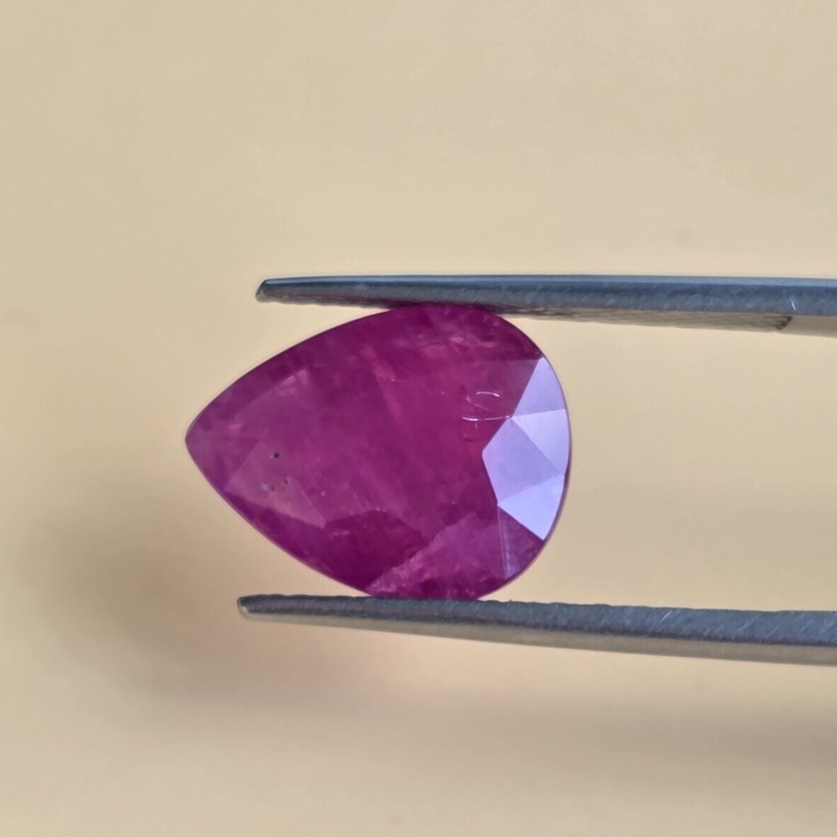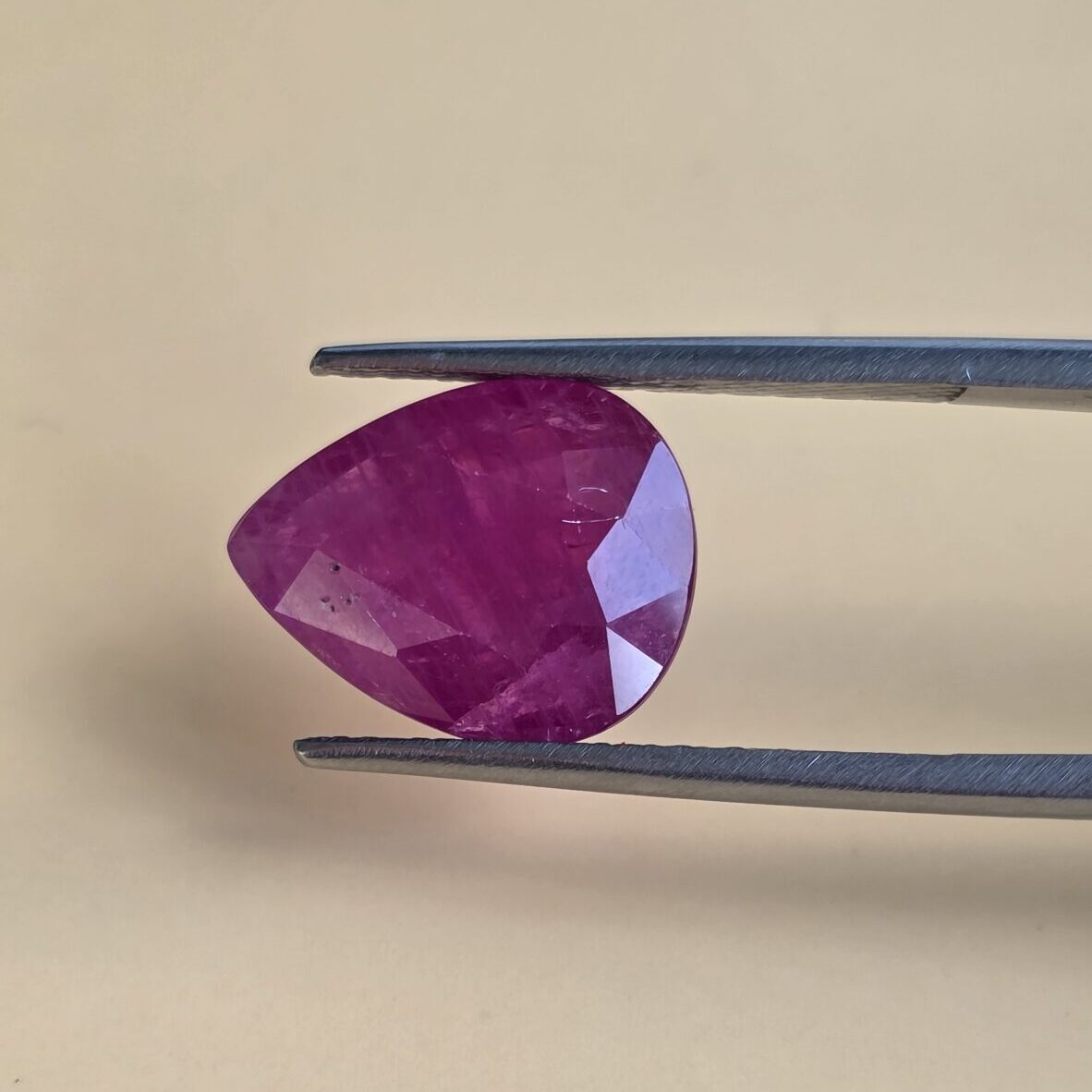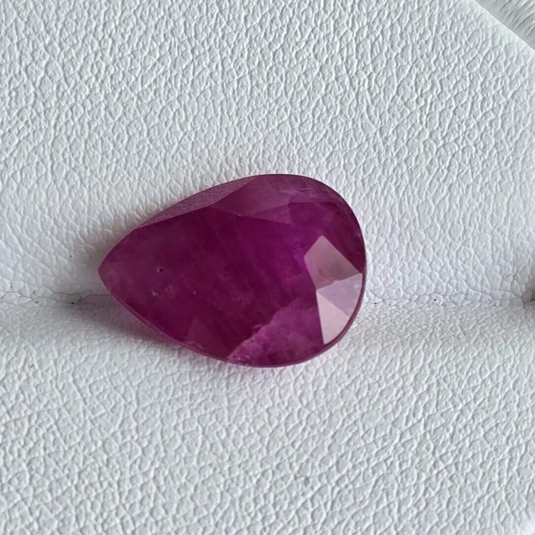 Presenting a beautiful 8.19 Carat Natural Mozambique Ruby, expertly crafted in a pear cut (dimensions 12.8 × 15 × 5.5 mm). This ruby exhibits a rich, deep red color and excellent brilliance, making it a standout gemstone for luxury jewelry or astrological use.