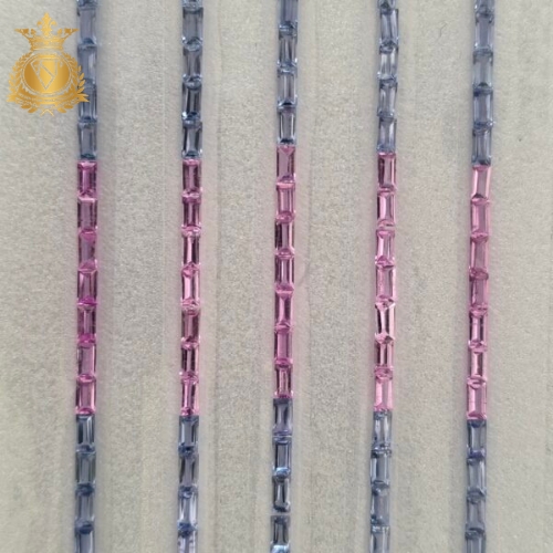 This lot consists of Natural Multi Line Sapphires in a precise 4×2 mm calibrated size, with a combined total weight of 34 carats. The stones feature natural internal line patterns that create a unique appearance and character in each gem.