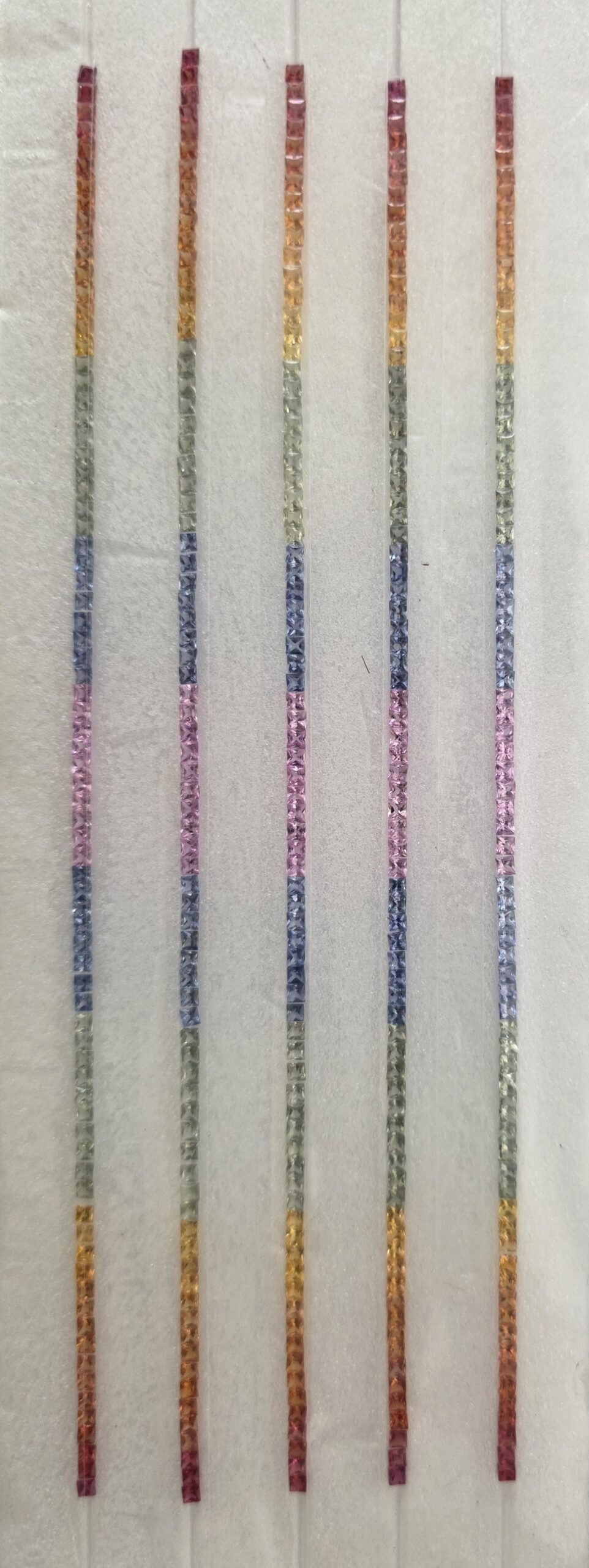 Natural Multi Sapphire Lines in beautiful Oval 6×4 mm size, total 84.60 carats. High-quality sapphires with attractive natural line patterns. Also available in single line pieces, perfect for jewelry making, gemstone collections, and wholesale buyers.