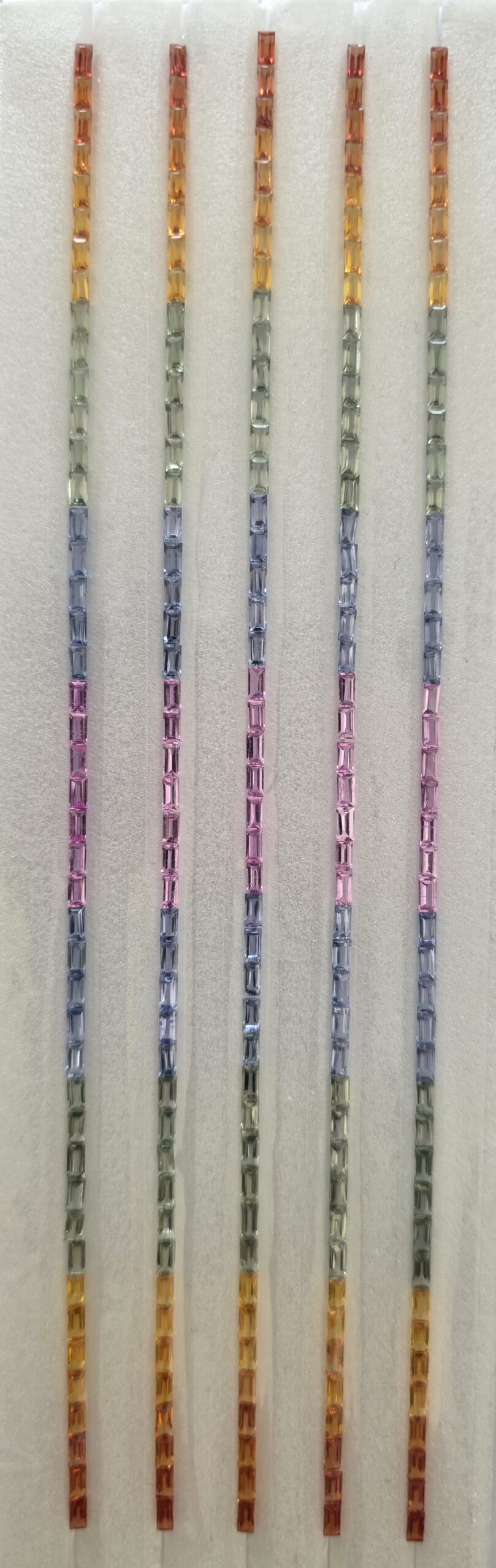 This beautiful lot features Natural Multi Sapphire Lines in a round 3 mm size, with a total weight of 42.50 carats. These sapphires display a variety of natural colors, creating a vibrant and attractive mix suitable for fine jewelry designs.
