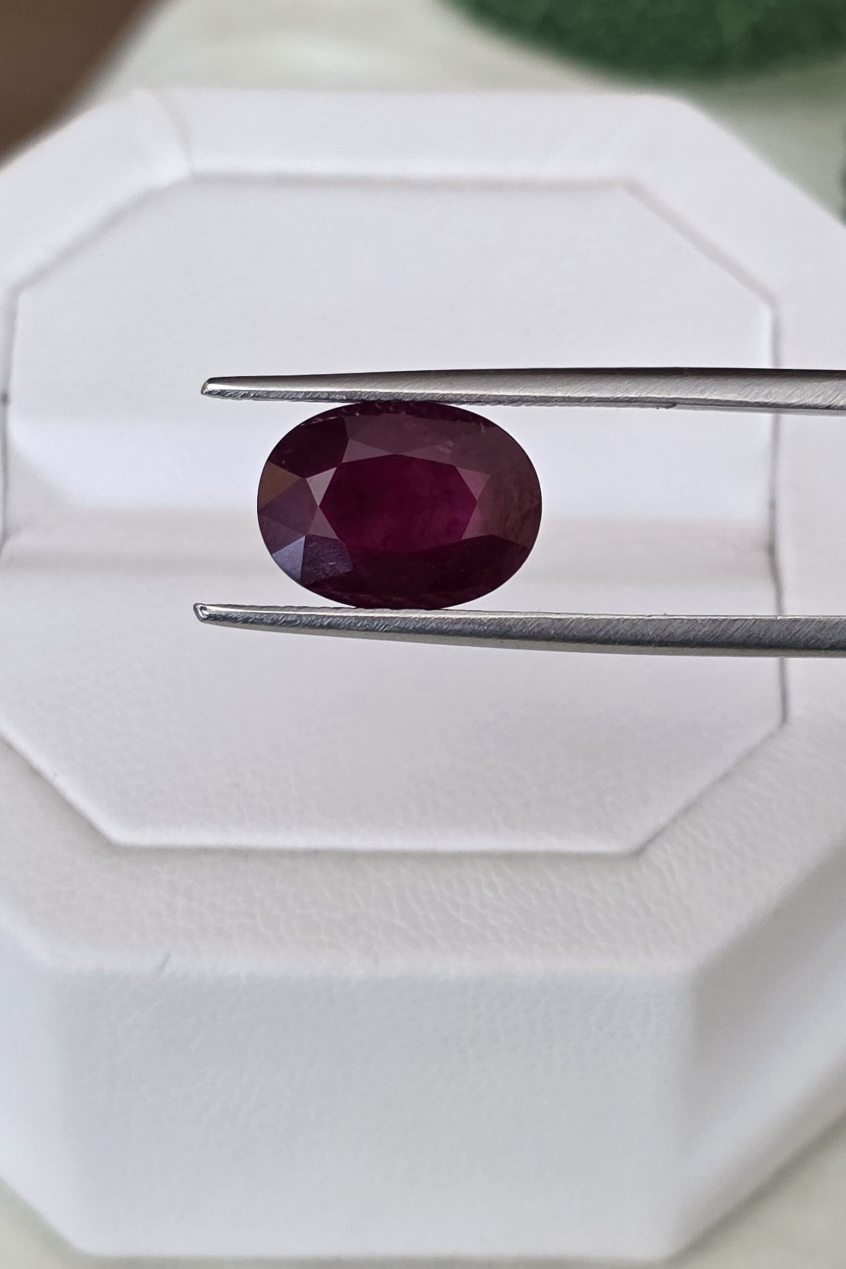 This exquisite Natural Ruby weighs 5.75 carats and is beautifully crafted in an Oval cut measuring 12 × 10.2 × 5 mm. Sourced from Mozambique, this ruby displays a rich, vivid red hue—symbolic of passion, courage, and vitality.