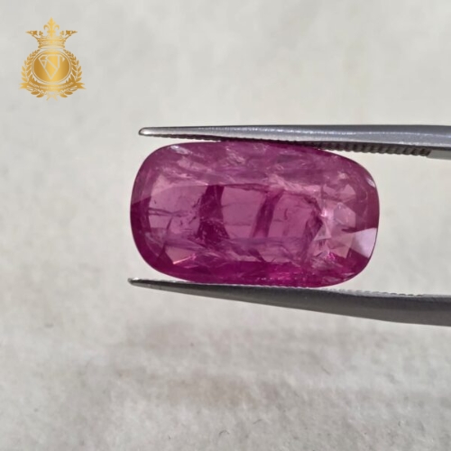 Experience the timeless elegance of this 6.27 carat natural ruby, expertly cut in a classic cushion shape to enhance its brilliance and color. This gemstone displays a stunning reddish-pink tone, highly desirable among collectors and jewelry designers.