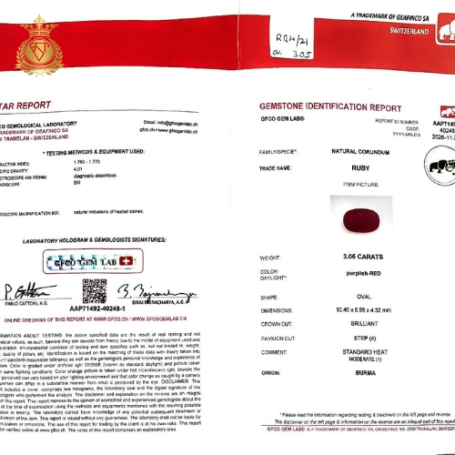 This natural heated Burma ruby showcases excellent brilliance and color, making it perfect for rings, pendants, or investment purposes. Each stone is carefully selected to ensure authenticity and quality.