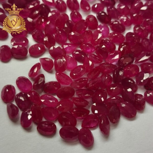This lot includes Oval and Pear-shaped rubies, precisely cut in 7×5 MM calibrated size, making them perfect for rings, pendants, earrings, and custom jewelry settings. With a total weight of 173.90 carats, this parcel is ideal for bulk buyers and professional jewelers.