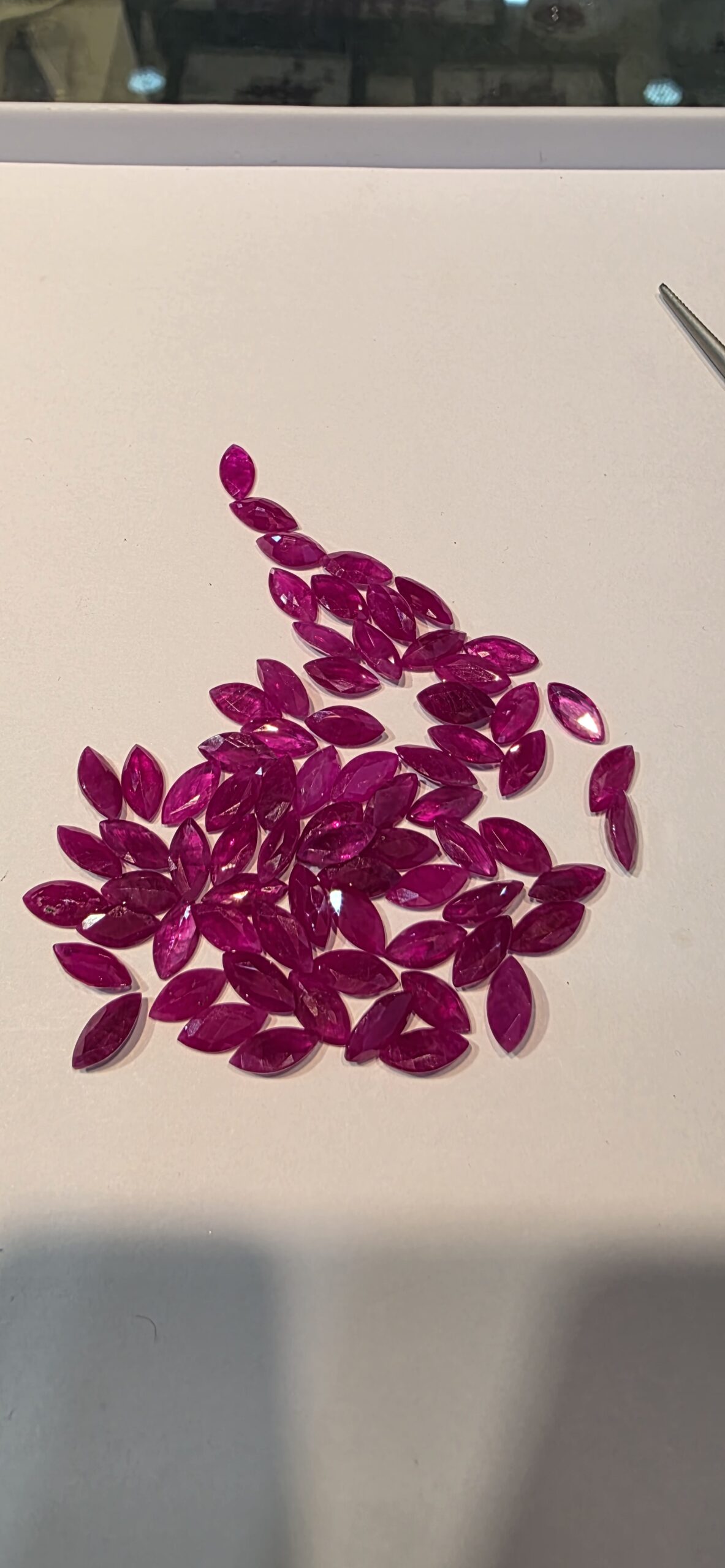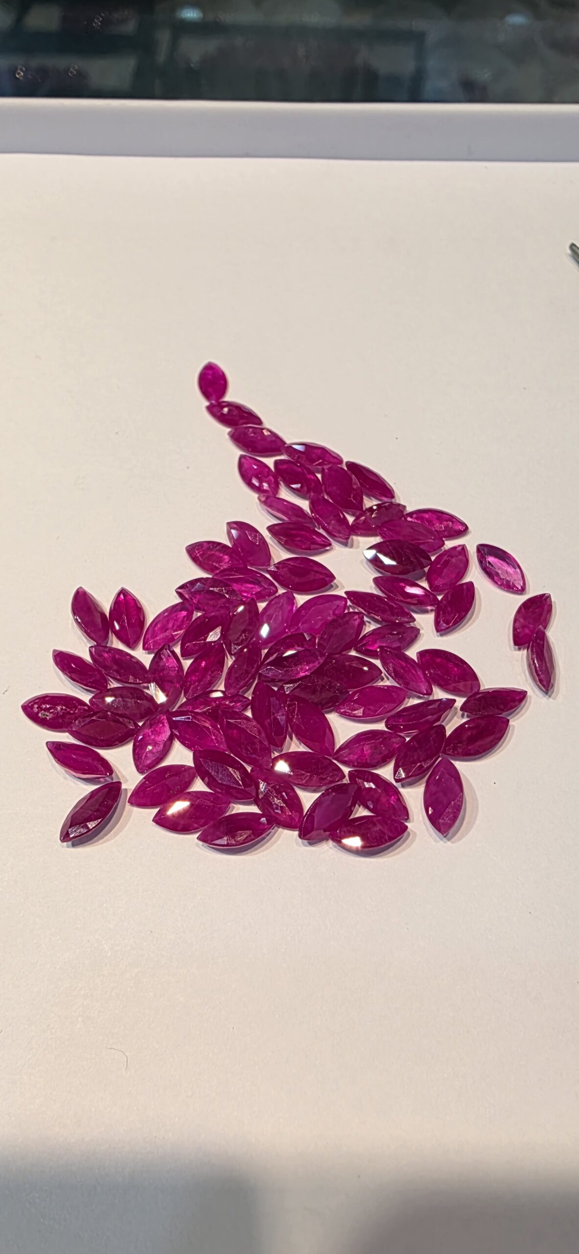 Magnificent natural Burma ruby parcel weighing 82.95 carats, in elegant marquise cut. Known for its rich red hue and brilliance, this parcel is ideal for high-end jewelry creations or gemstone collections.