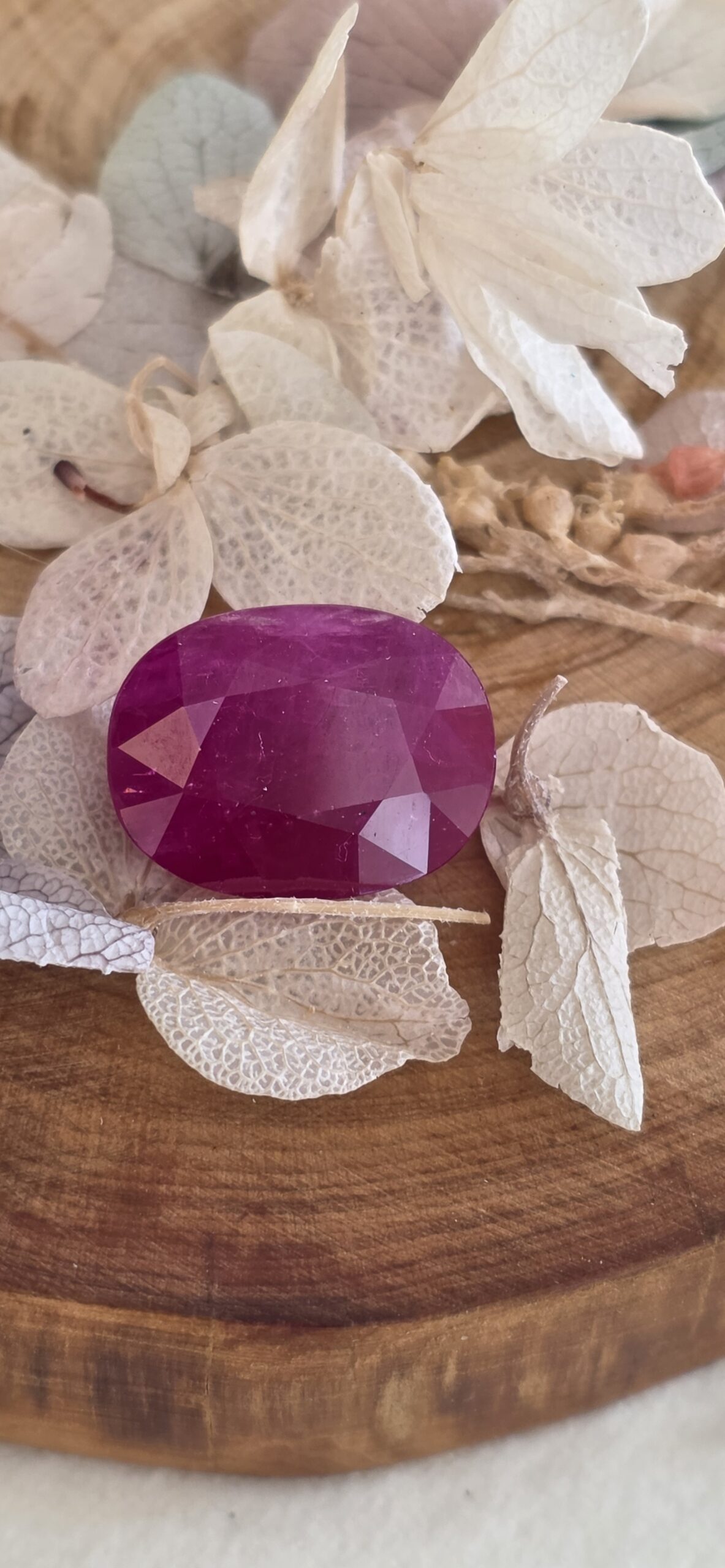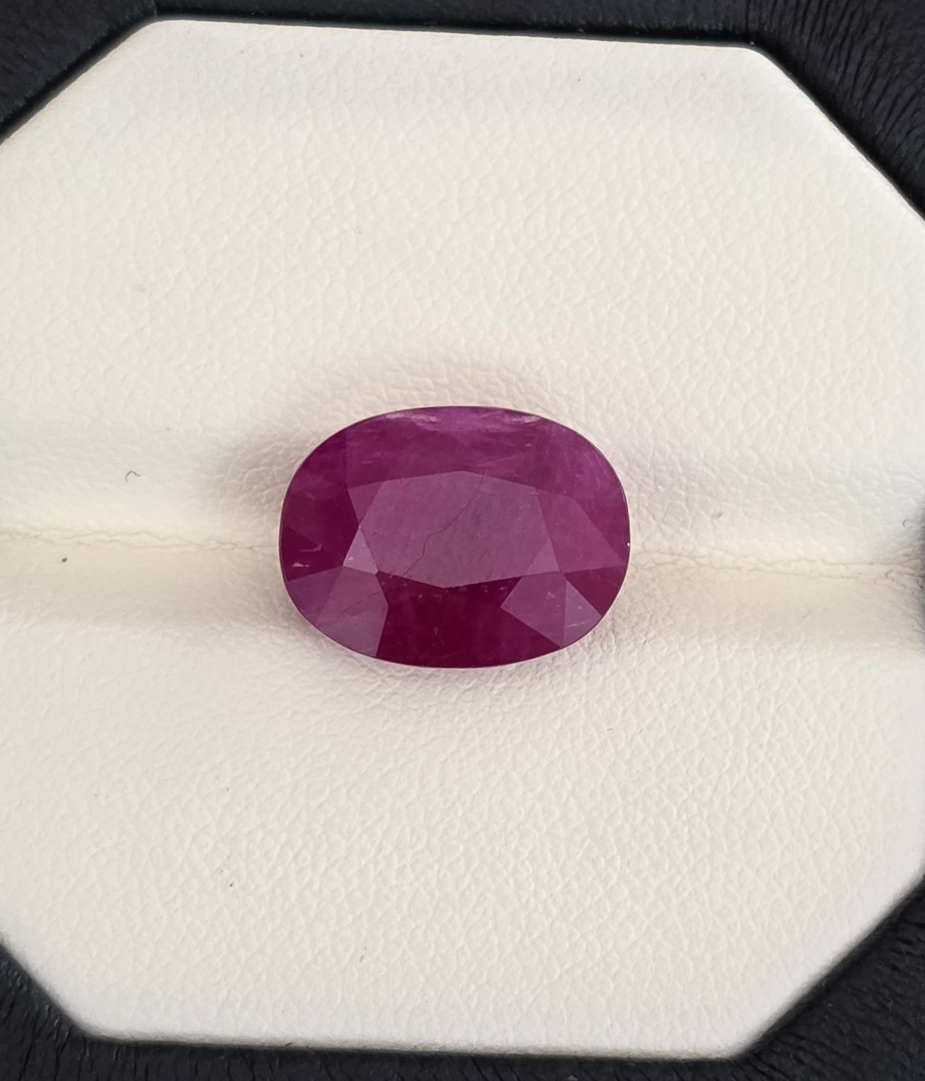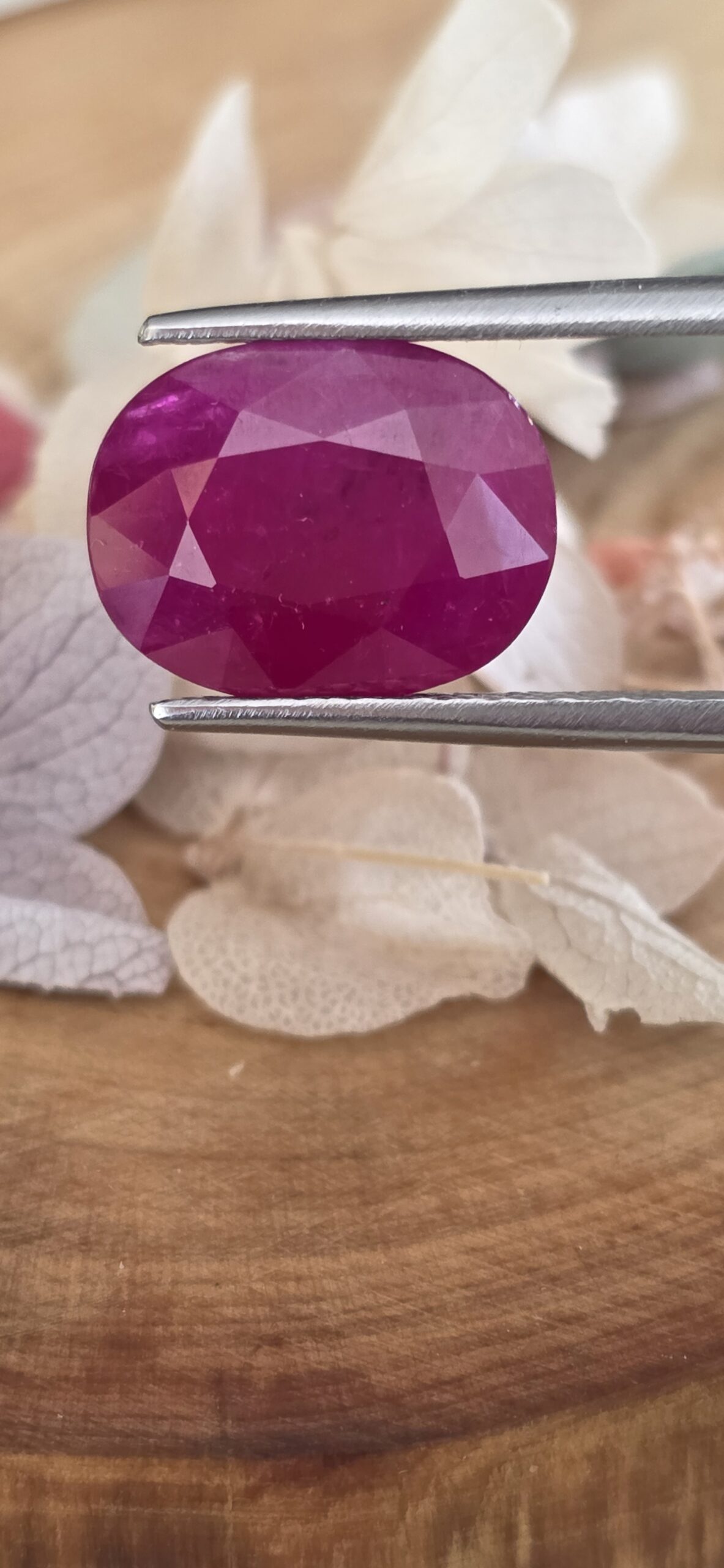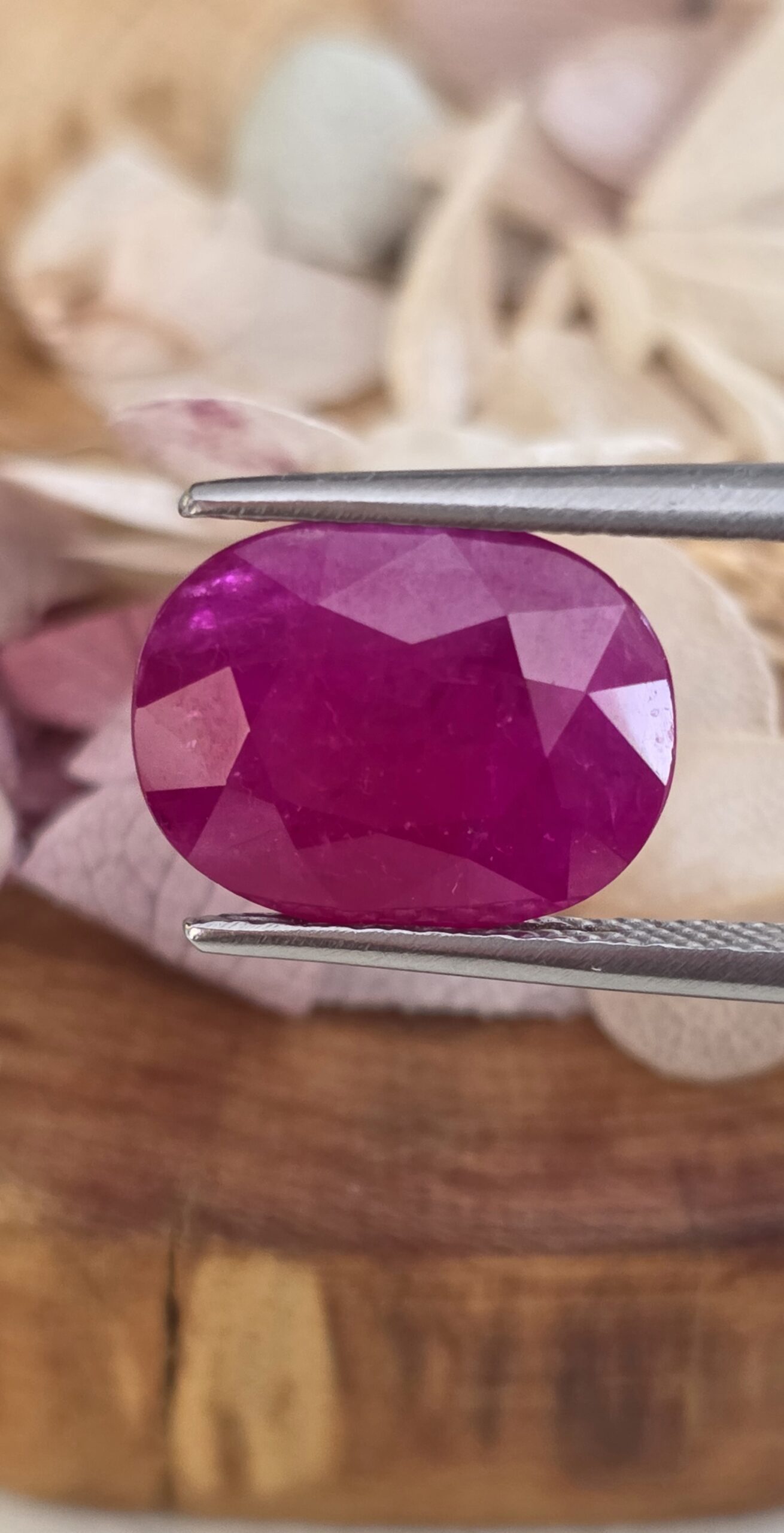 This exquisite Natural Ruby Sapphire weighs 6.98 carats and features an elegant Oval cut with dimensions 14.8 × 11.2 × 4 mm. Sourced from Mozambique, this gemstone displays a rich, vibrant reddish-pink hue that symbolizes passion, strength, courage, and vitality.