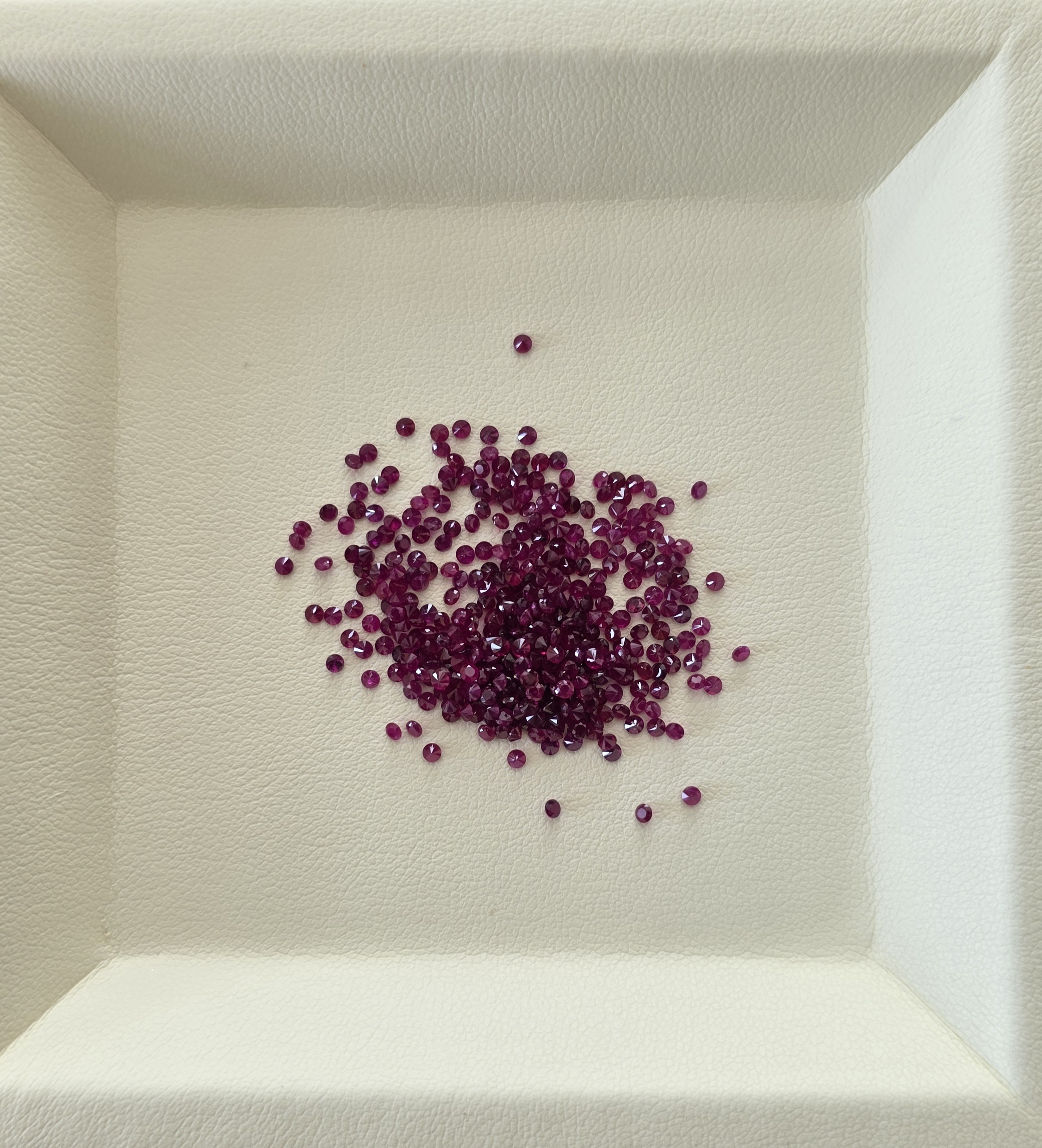 Each ruby in this lot is precisely cut in a round diamond style, allowing maximum light reflection and brilliance. The calibrated size makes these stones perfect for micro-pavé settings, designer jewelry, luxury watches, bracelets, rings, and earrings.