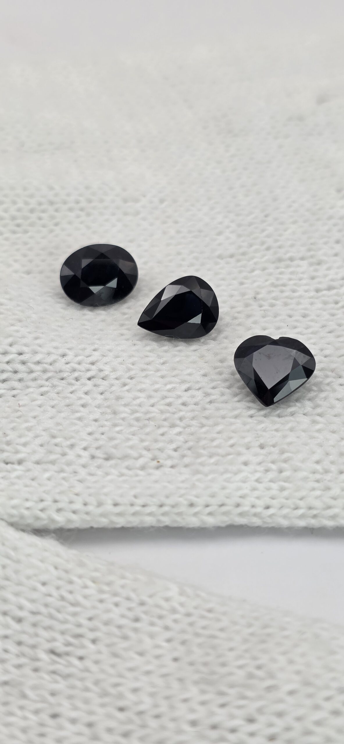 A beautiful collection of 3 natural sapphires with a total weight of 8.75 carats, featuring mixed shapes and sizes. This parcel includes heart, pear, and oval cuts, offering versatility for fine jewelry designs such as rings, pendants, or custom sets.