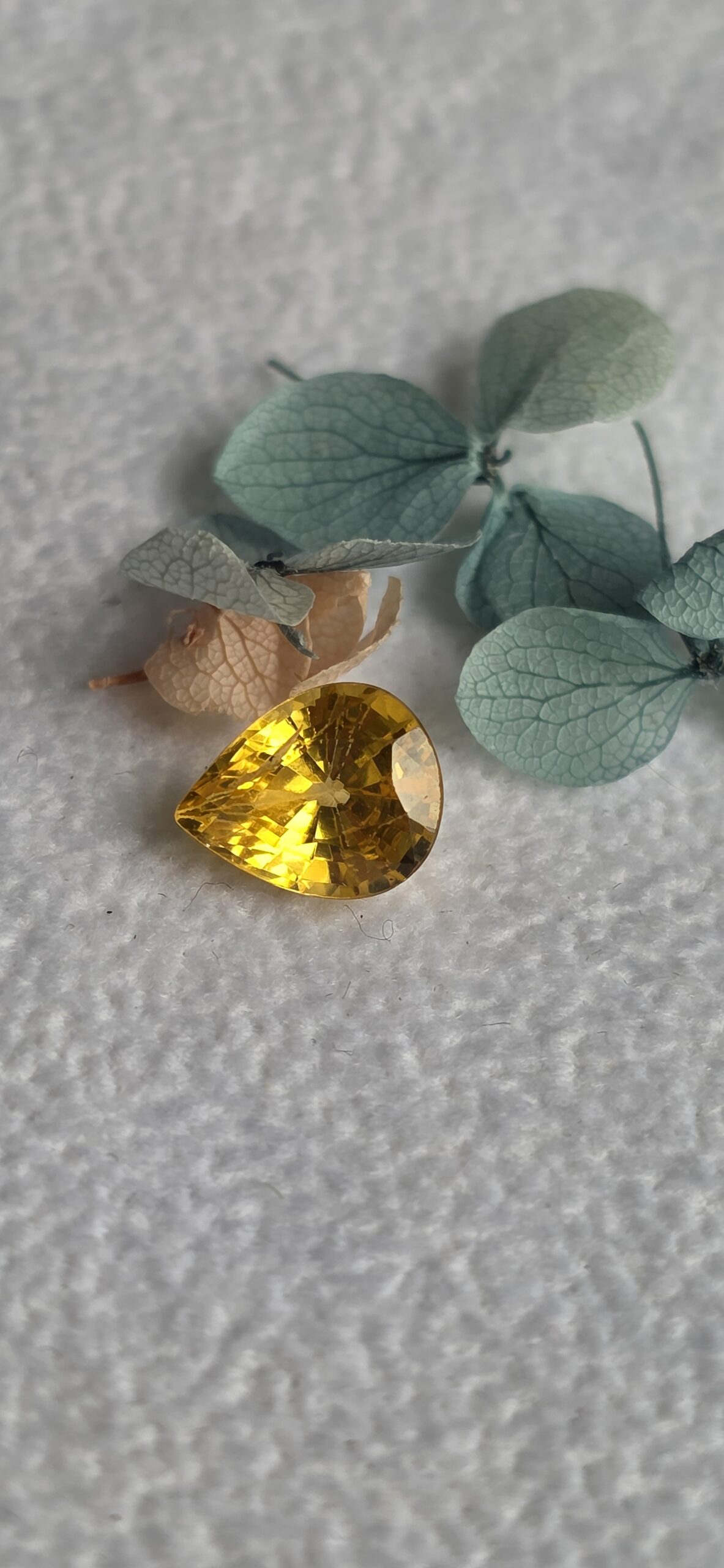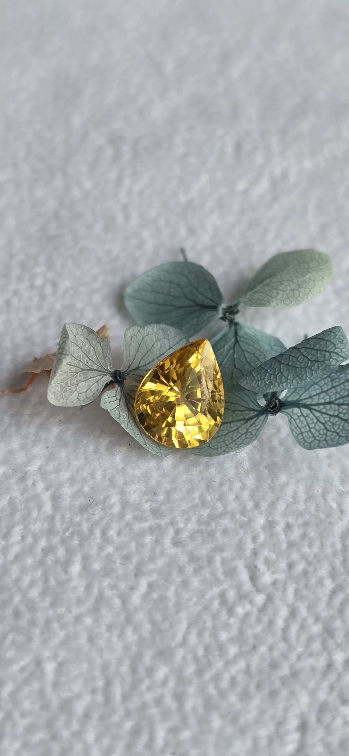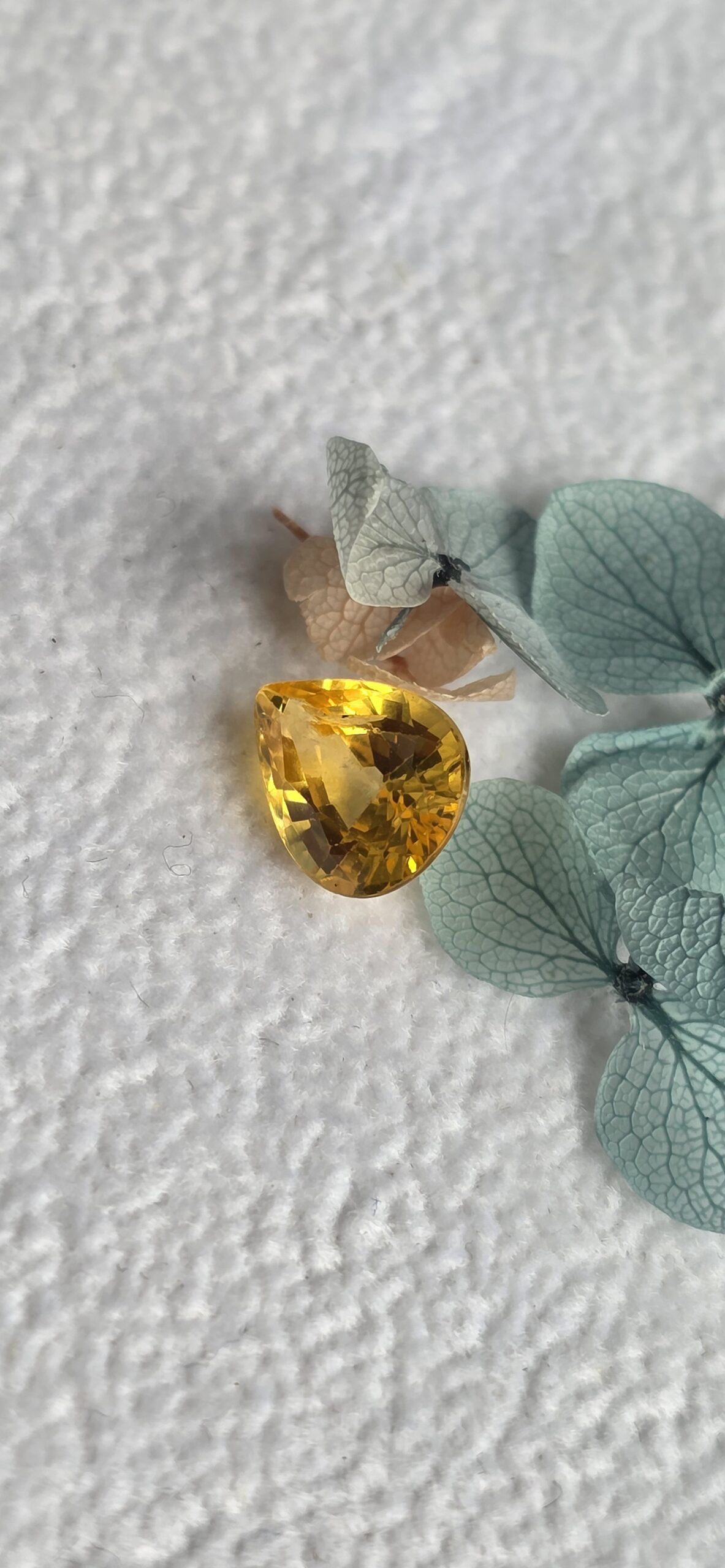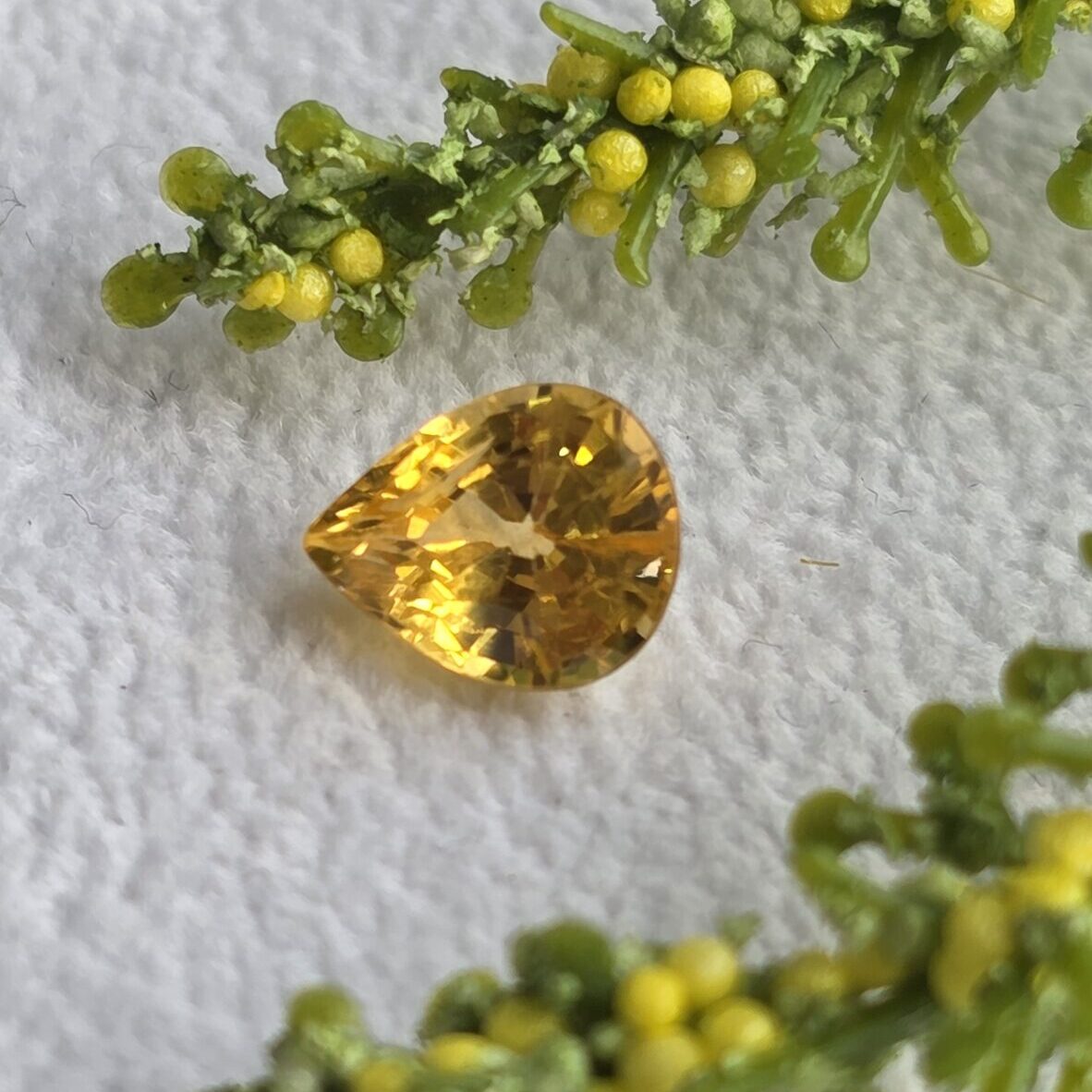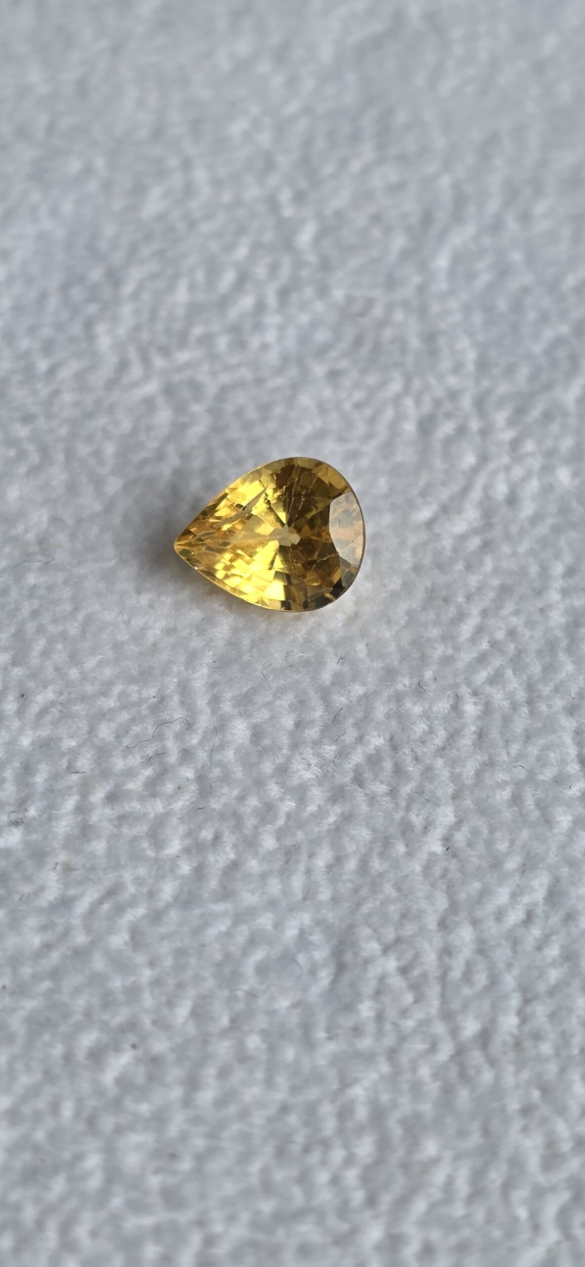 • Natural Yellow Sapphire, 2.24 carats, pear cut (8.4 × 7.1 × 4.8 mm). Certified gemstone from Thailand (Bangkok), perfect for jewelry & astrology.