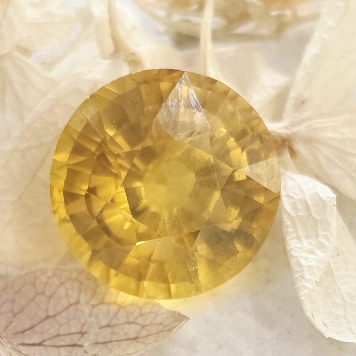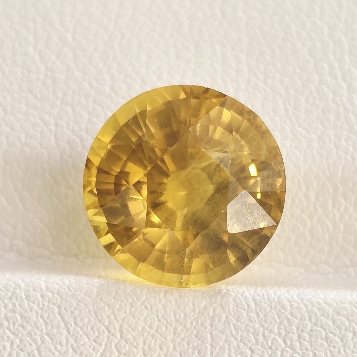 This premium Natural Yellow Sapphire weighs 7.25 carats and features a brilliant Round cut with dimensions 10.3 × 7.5 mm. Sourced from Thailand, this gemstone displays a rich golden-yellow color known for its brightness, clarity, and positive energy.
