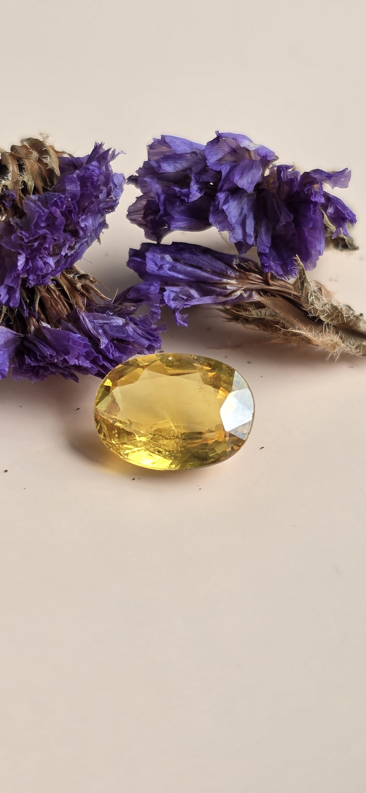 Highly valued in Vedic astrology, Yellow Sapphire is linked to Jupiter (Guru) and is believed to bring prosperity, wisdom, and good fortune.
