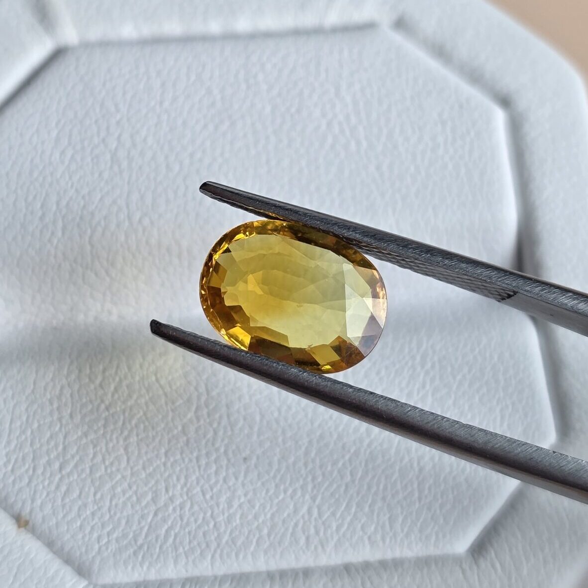 Originating from Thailand, this gemstone showcases a vibrant golden-yellow color with excellent clarity and brilliance.