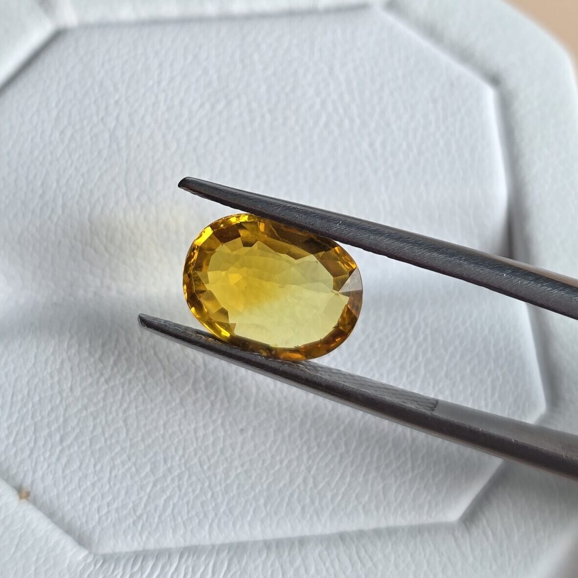 Highly regarded in Vedic astrology, Yellow Sapphire is associated with Jupiter (Guru) and is believed to bring prosperity, wisdom, and good fortune.