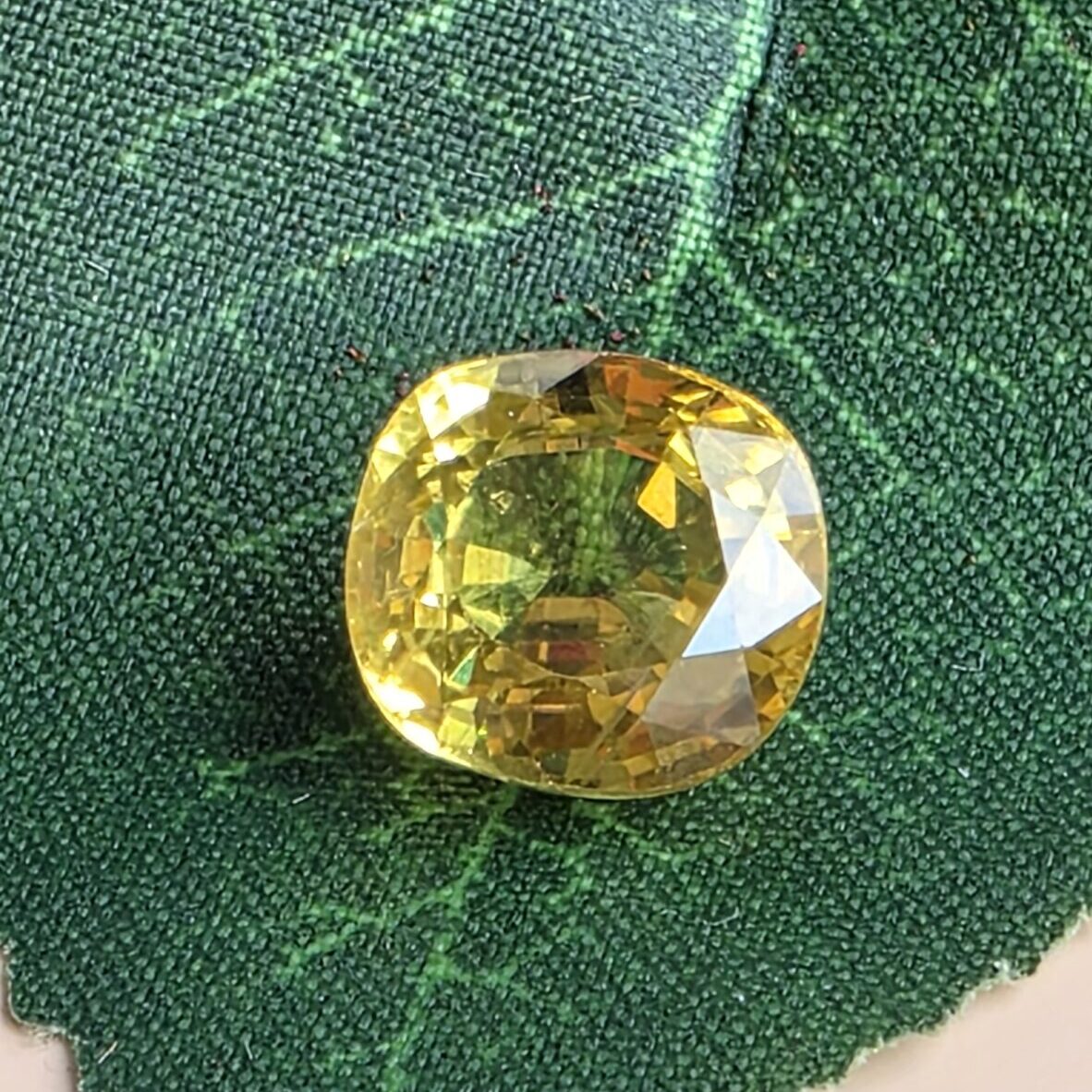 Sourced from Thailand, this gemstone exhibits a bright golden-yellow color with excellent clarity and brilliance.