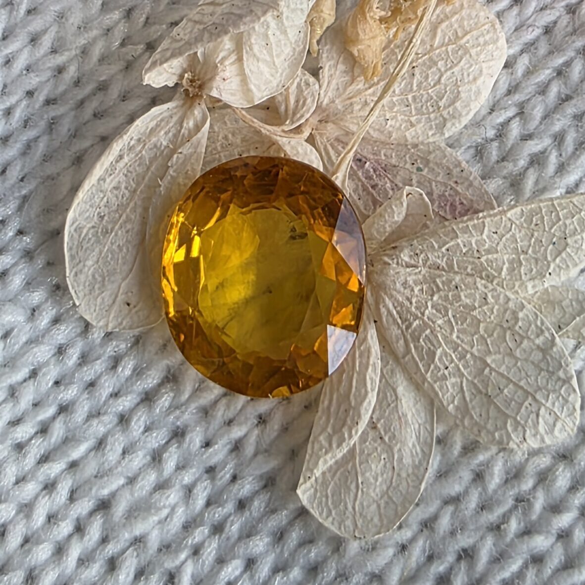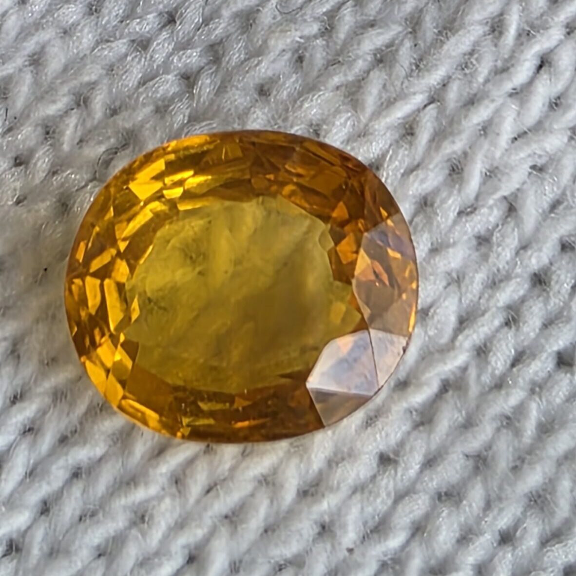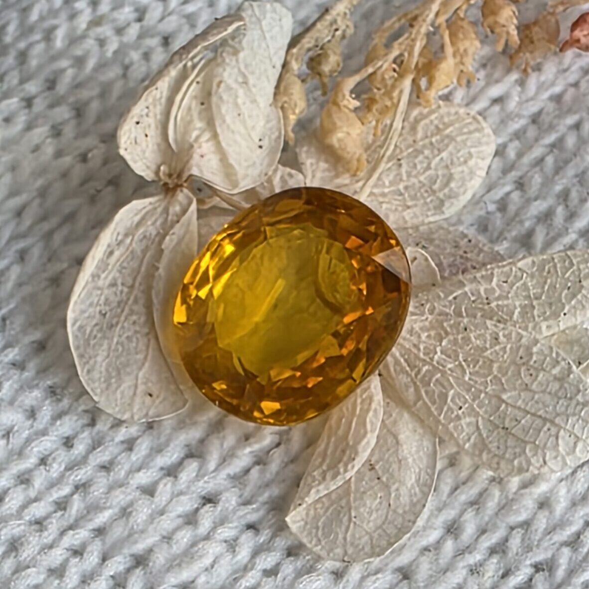 Highly valued in Vedic astrology, Yellow Sapphire is linked to Jupiter (Guru) and is believed to bring wealth, wisdom, prosperity, and good fortune.