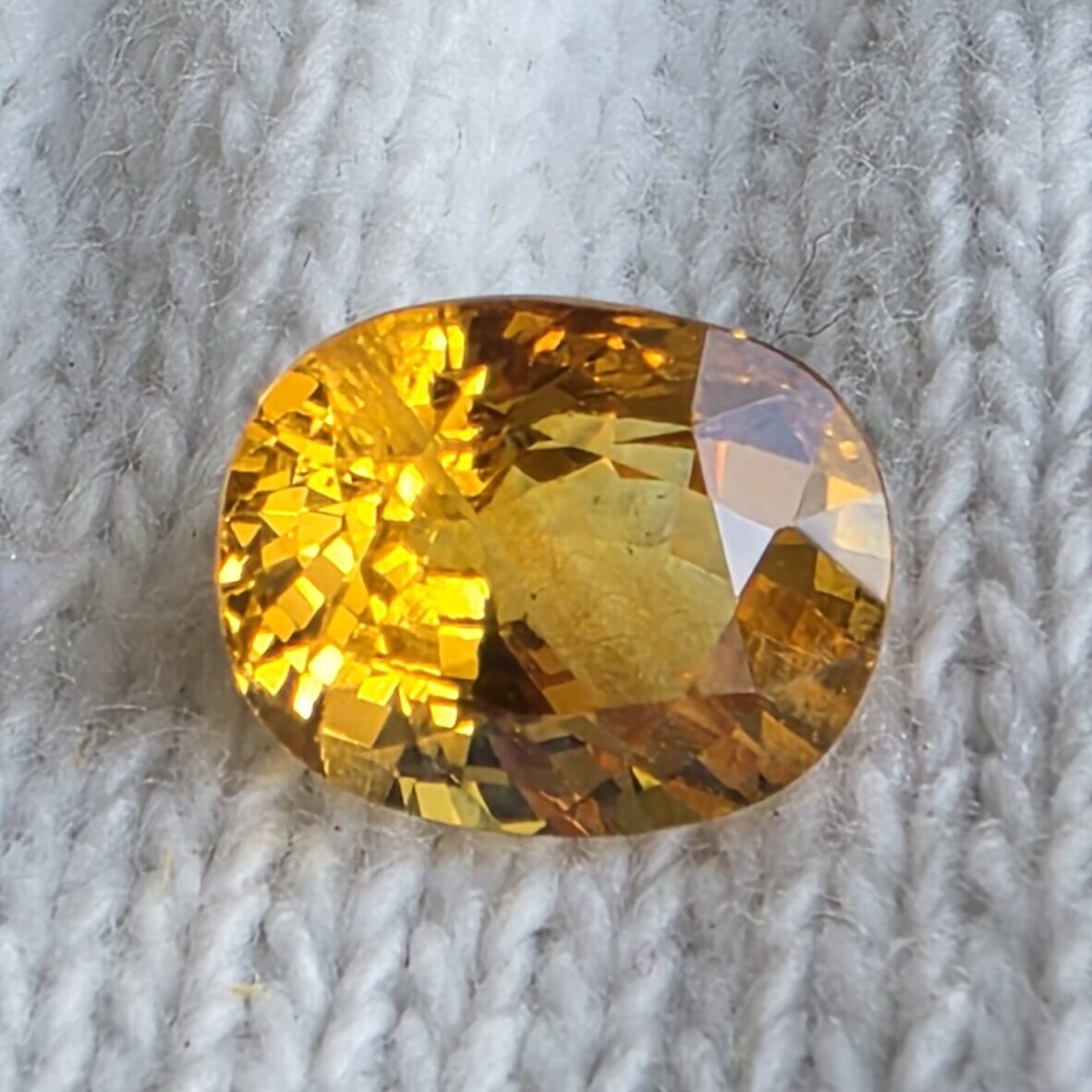 Sourced from Thailand, this gemstone displays a bright golden-yellow hue with excellent clarity and brilliance.