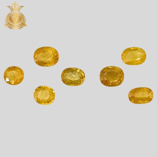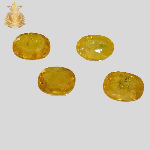 Premium Natural Yellow Sapphire (Pukhraj) weighing total 17.61 carats, beautifully crafted in oval cut. This exclusive lot of 4 pieces offers excellent brilliance, ideal for fine jewelry or astrological use. Available for selection (individual pieces can be chosen).