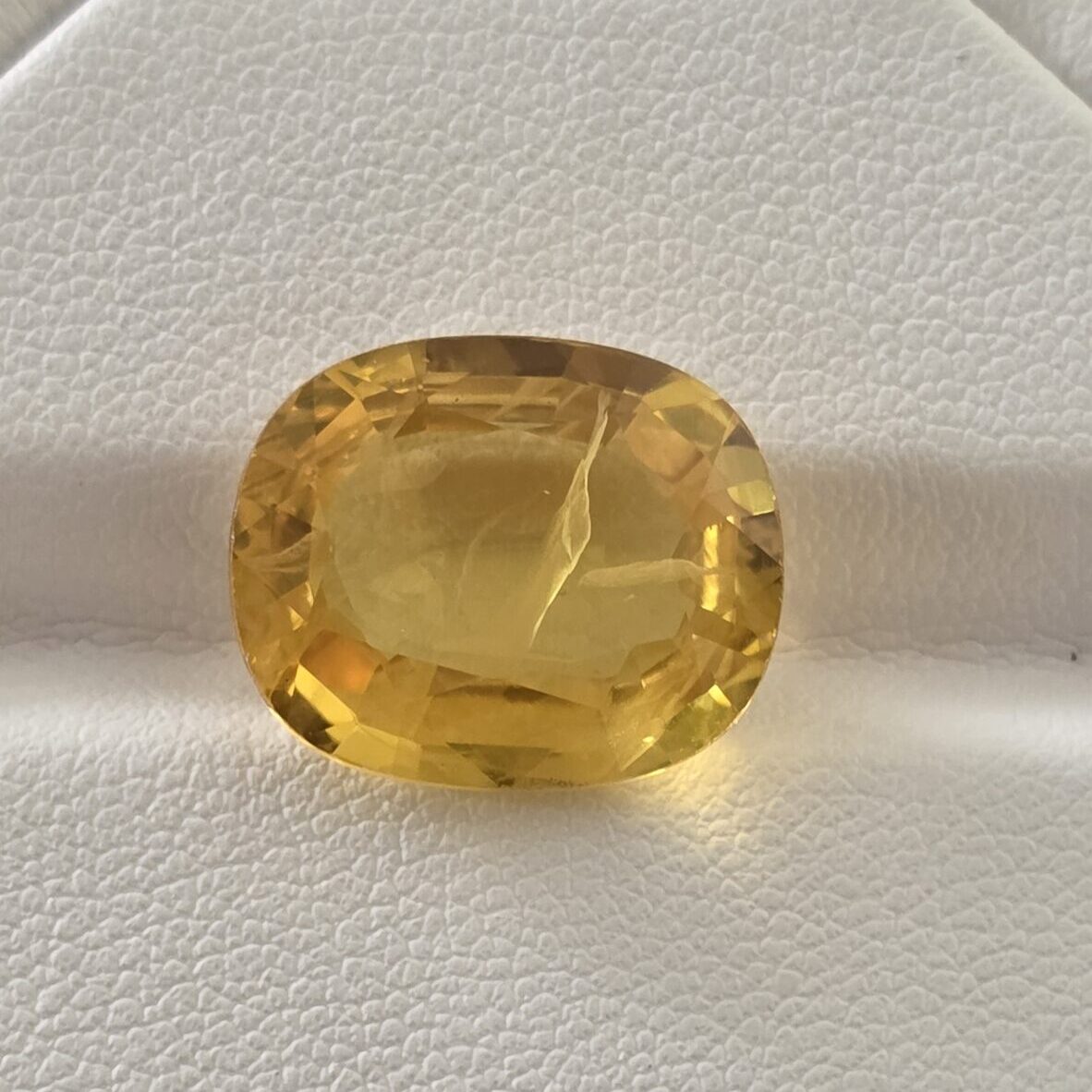 Illuminate your aura with this Yellow Natural Sapphire weighing 12.52 carats, expertly cut to dimensions 16.2 × 3.4 × 6 mm. Originating from Thailand, this gemstone radiates a warm golden-yellow hue symbolizing wisdom, prosperity, and positivity.